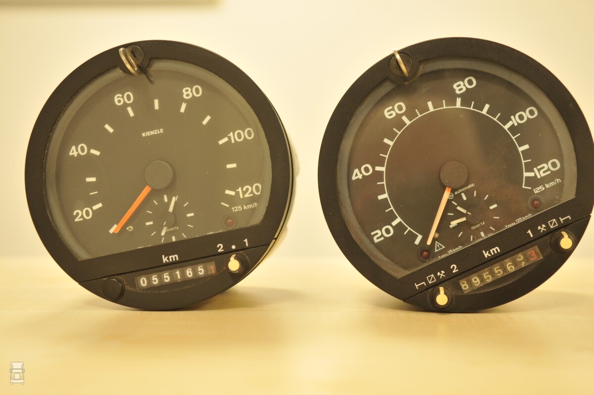 De analoge tachograaf zou daar verandering in brengen. Op de foto zie je de eerste uit 1974 en daarnaast de latere versie, die de meesten van ons nog wel kennen, want die ging pas in 2006 met pensioen. Overigens om dezelfde reden als waarom het rittenboekje moest wijken. Die eerste tachograaf heeft de mogelijk om vijf schijven achter elkaar vol te schrijven en automatisch van 'schrijfschijf' of 'registratieblad', zoals de inspectie het zegt, te wisselen.