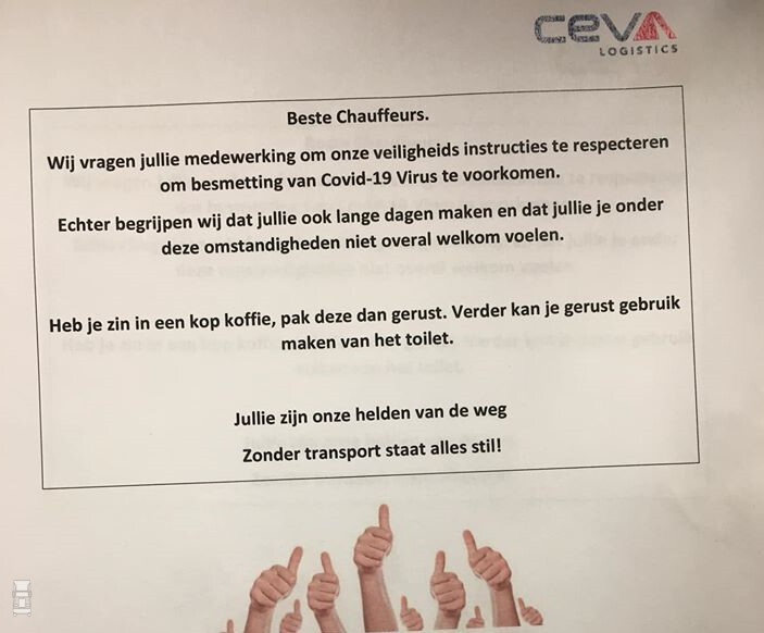 We kregen afgelopen week van Ceva Logistics een brief onder ogen waarbij chauffeurs van harte welkom werd geheten. Laat ons op onze Facebook-pagina weten wat jullie ervaringen zijn. We moeten hier met z’n allen even doorheen. Het is tegelijk een mooie kans om eindelijk meer waardering te krijgen voor ons chauffeursvak!
