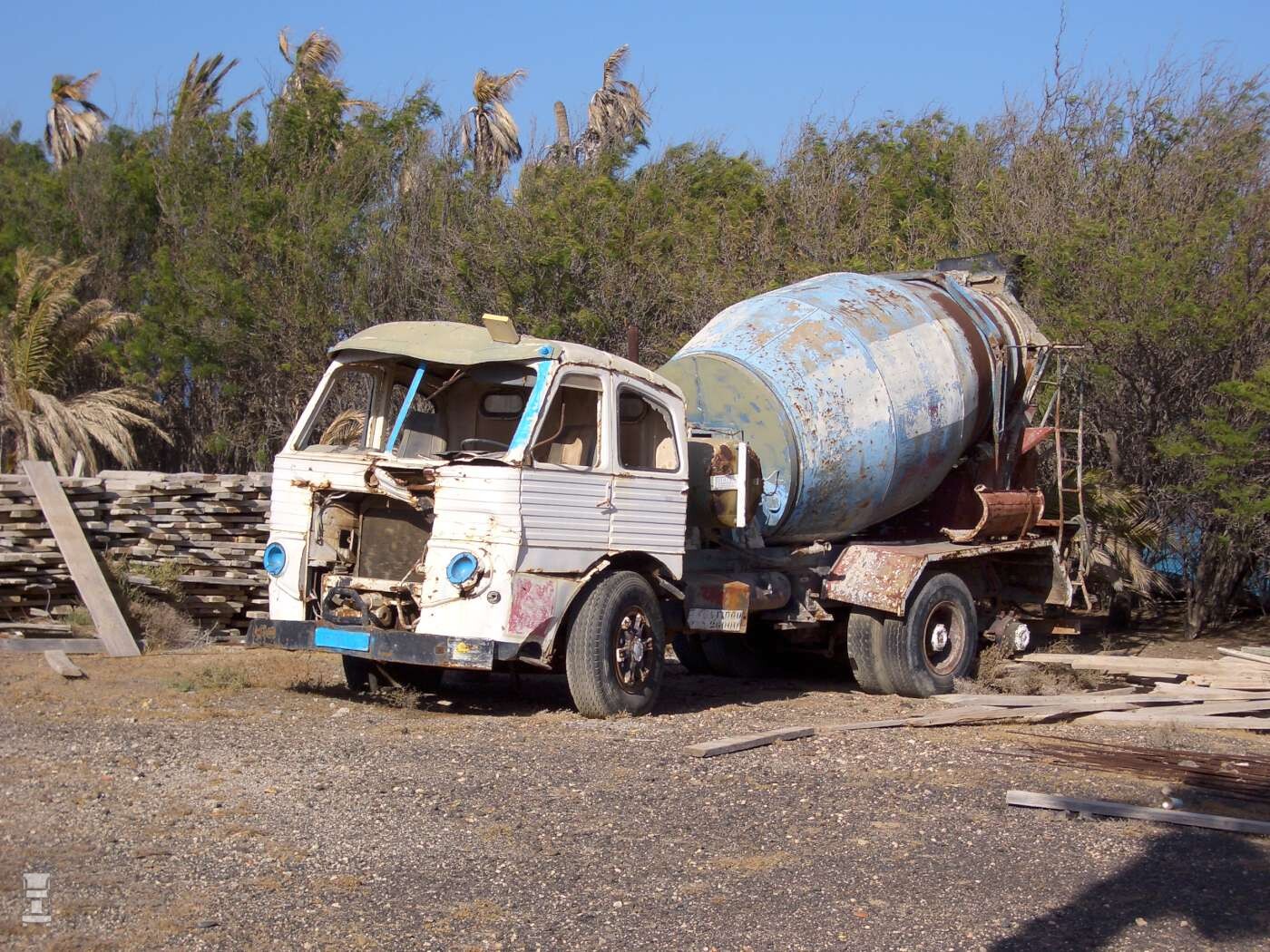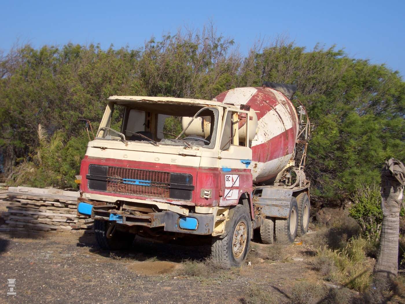 Hij staat er maar treurig bij, in een hoek van het terrein van een aannemer. De gedeukte cabine is aangetast door roest, het gele bordje op het dak hangt vermoeid naar voren en er missen allerlei onderdelen. Ooit was dit een glanzende, gloednieuwe truck waar iemand heel veel geld voor betaalde, en waar een trotse chauffeur zijn werk mee reed. Jarenlang heeft de truck gewerkt aan de bouw van de vele hotels op Fuerteventura voordat hij werd afgedankt en in de hoek werd gezet.