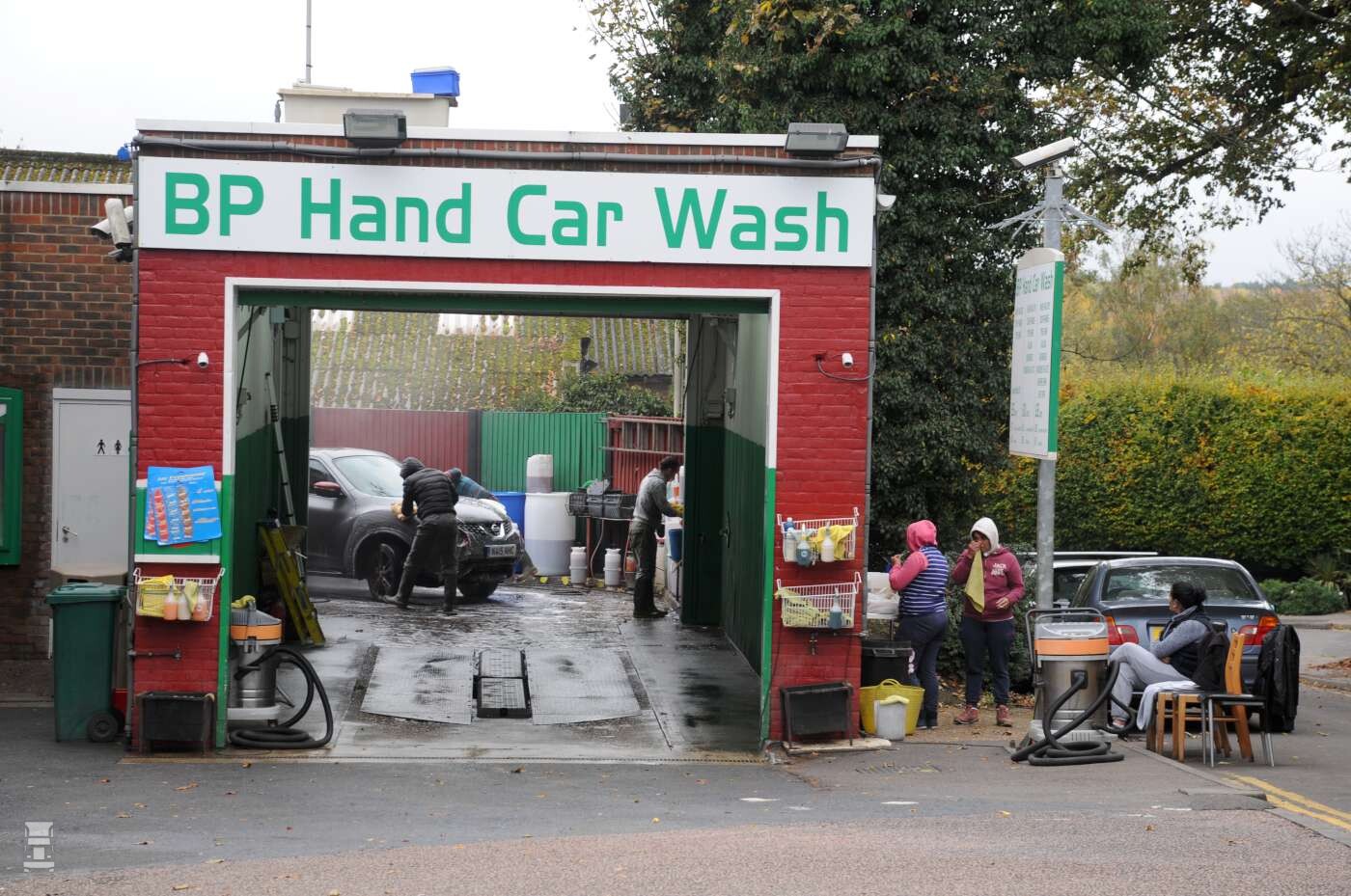 Onlangs was ik in Engeland getuige van dit tafereeltje. Het is een 'handwas-straat' bij een klein BP tankstation in een stadje. Het plaatje zou echter net zo goed in Pakistan gemaakt kunnen zijn gezien de armoede die er van af straalt. Een hele familie brengt zijn tijd door op houten stoeltjes in de kou, wachtend op een incidentele klant die zijn auto schoon wil laten soppen. In het gebouwtje verraden de stalen railsjes in de vloer dat hier ooit een echte autowasstraat in liep, maar dat is waarschijnlijk al jaren geleden.