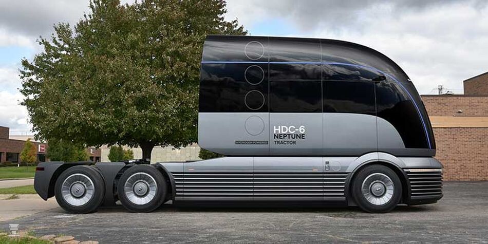 Hyundai laat op een Amerikaanse truckshow deze nieuwe Neptune zien. Het lijkt een ontwerp uit Star Wars: het heeft zeker wel wat, het is ook een beetje retro, maar verder komen we weinig te weten. Toch willen we je deze plaatjes niet onthouden, het heeft zeker wel wat. Merk op dat er nog steeds rekening wordt gehouden met een chauffeur aan boord.
