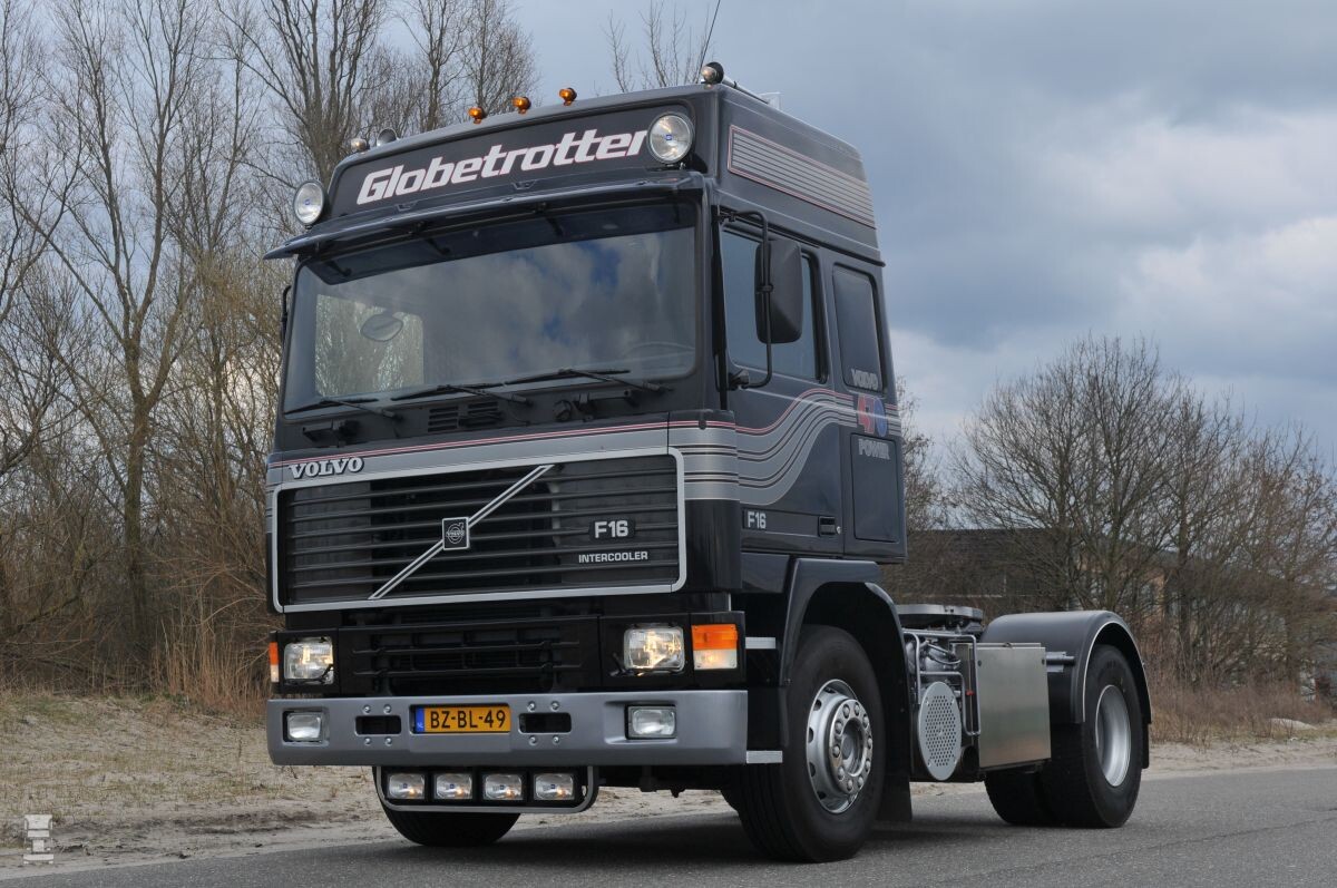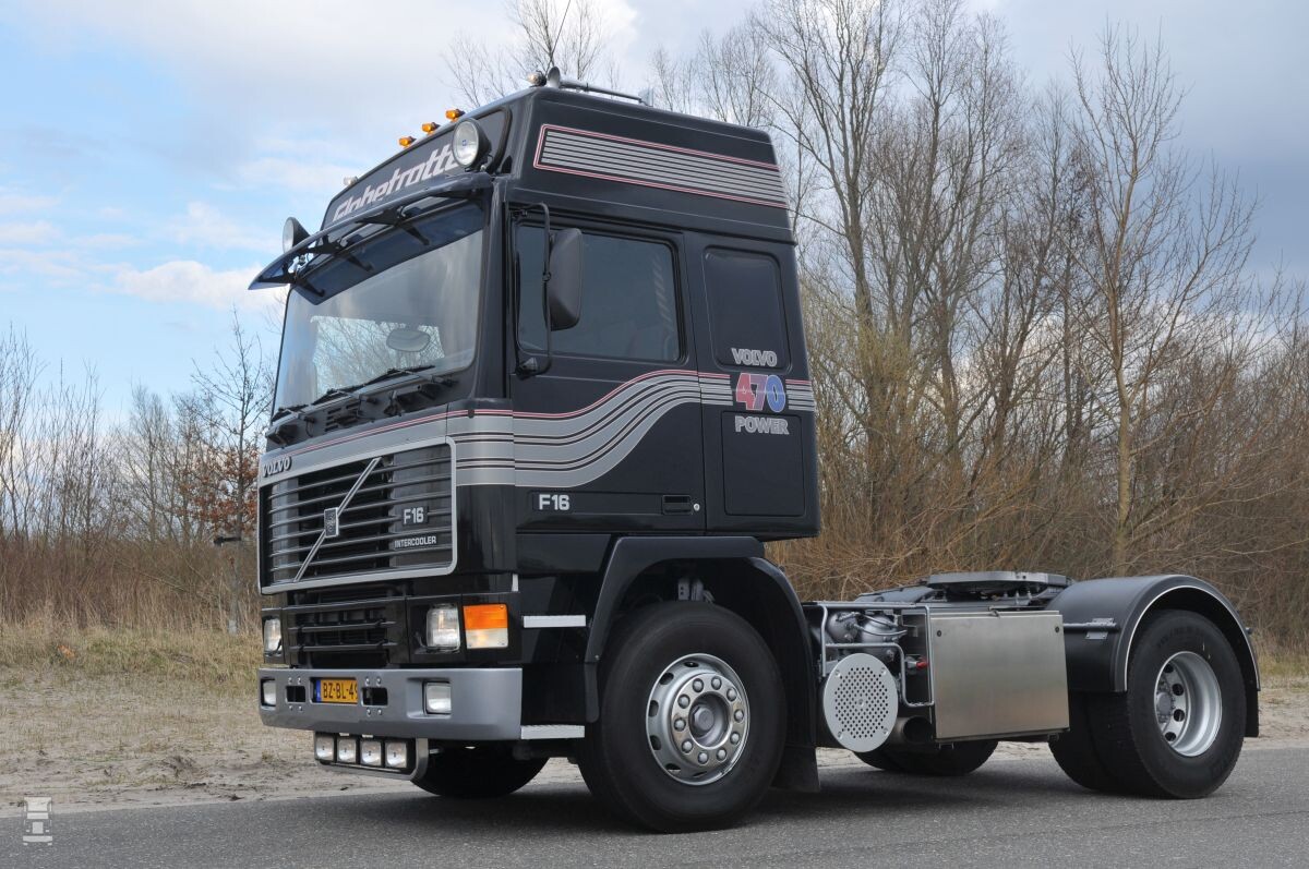 Deze F16 stamt van het eerste productiejaar, 1987. Voor die tijd had Volvo een beetje dezelfde mentaliteit als DAF, namelijk: van hele sterke trucks verkoop je er maar weinig, maar de ontwikkelingskosten zijn wel hoog. Dus die paar klanten laten we aan een ander over. Echter dat aartsrivaal Scania bijzonder succesvol was met de V8, toen ook al, en natuurlijk het feit dat Scandinavische vervoerders liever meer dan minder vermogen hebben, deden Volvo toch besluiten een zestien liter motor te ontwikkelen. Die had dan wel twee cilinders minder dan de concurrent, maar had toch mooi twee liter meer slagvolume.