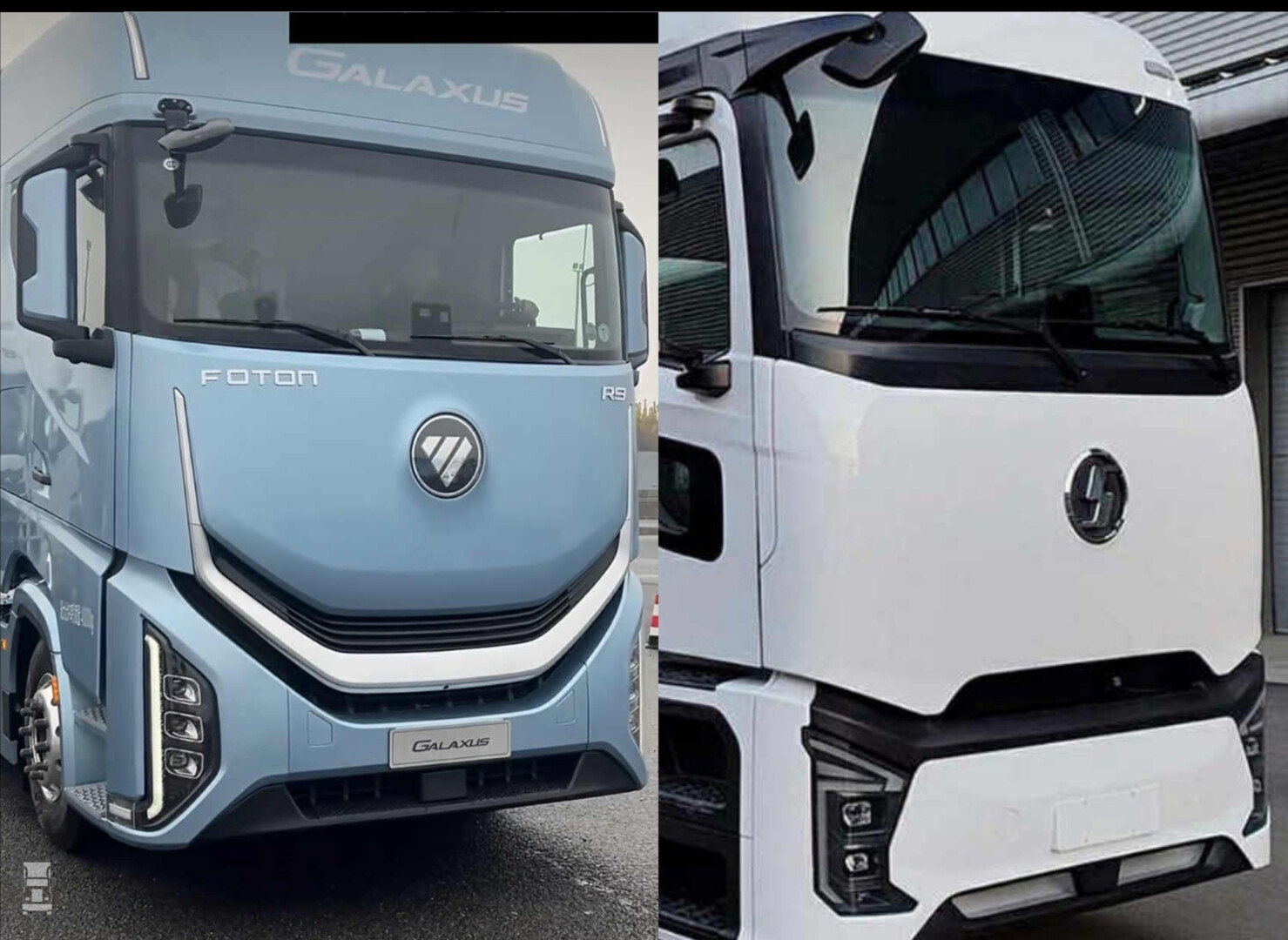 Op social media vonden we deze twee trucks, een Shacman en een Foton. Beide hebben ze een soortgelijk enorm vlak en afgerond front met opmerkelijk genoeg ook een rond logo centraal op het front. De blauwe Foton heeft in tegenstelling tot de afhangende ‘mondhoeken’ van de ProCabin ondergrille een enorme smile. De blauwe truck is overigens wel een diesel.