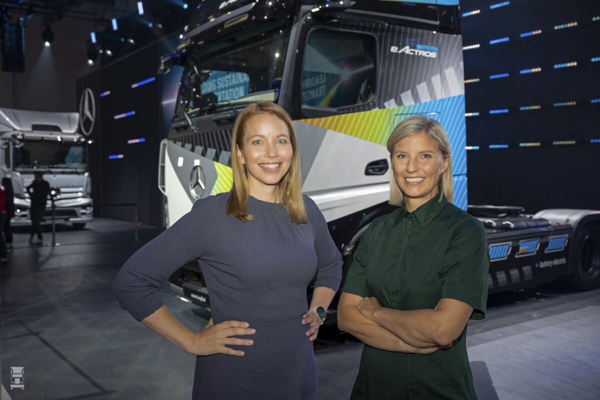 Daarmee was de honger van Mercedes naar Zweedse Scania-managers nog niet gestild. Op de IAA werd bekend dat Stina Fagerman (op de foto links) sinds 1 mei van dit jaar verantwoordelijk is geworden voor marketing, sales en services bij Daimler Truck. Ze rapporteert aan Karin Rådström (rechts op de foto). Tot dat moment werkte ze voor Scania in Thailand. Voor die tijd was Fagerman in diverse andere landen actief voor Scania.