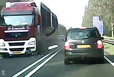 Het komt helaas nog regelmatig voor dat wielen voor zich zelf beginnen en zo ook nu weer. Gisteren legde de dashcam van Jan Koopman dit huiveringwekkende tafereel vast. Het wiel komt van een busje wat voor de Volkswagen rijdt en raakt de MAN truck vol in de grille. Vervolgens stuitert het wiel terug over de auto van Jan Koopman heen. Dat is dus geluk hebben want voor het zelfde geld vertel je het niet na. Dat overkwam dus vorige week nog iemand door een soortgelijk bizar ongeluk, en vorige week haalde nog zo'n ongeval het nieuws.
