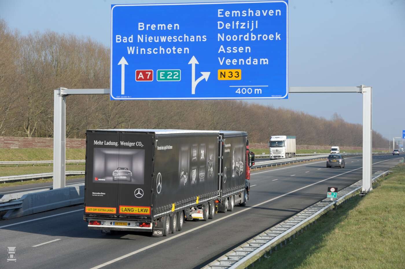 Het zou fijn zijn als dit soort regels door Europa worden bepaald, net als het totaalgewicht van de LZV. De Duitsers blijven halsstarrig aan de 40 ton vast houden met als argument de belasting van de wegen. Dat is een non argument, want een standaard 40 tonner op 5 assen heeft een asdruk van 8 ton, terwijl dat bij een 60 tons LZV op 8 assen maar 7,5 ton is. Daarbij komt het voordeel dat er veel minder trucks nodig zijn, en dat scheelt op iedere twee LZV combinaties een trekker van 8 ton.