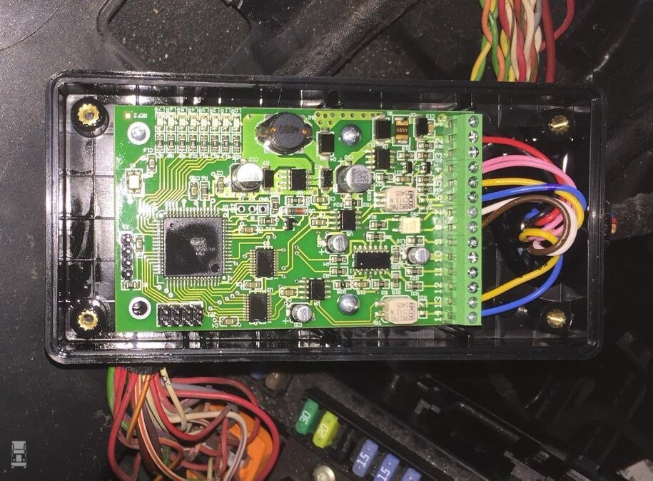 De Inspectie publiceerde vandaag bijgaande foto's van een gemanipuleerde tachograaf. Op de foto zie je de lichtgroene printplaat, vitaal onderdeel van het CAN-Bus systeem. Daarop constateerde de inspectie een inbreuk. Ook met de sensor, donkerder groen op de andere foto was gerommeld. Zo kon de chauffeur met een schakelaar naar believen de tachograaf aan en uit zetten.