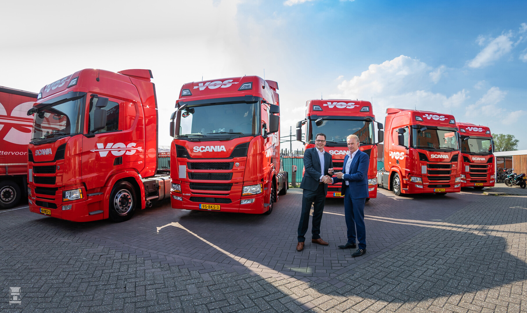 De 100 nieuwe Scania voertuigen geven Vos Transport een flinke boost. “Gedeeltelijk is het inruil, vooral van andere merken en een deel is uitbreiding. Daarmee komt ons wagenpark straks in totaal op 350 trekkende eenheden waarvan meer dan de helft Scania.”