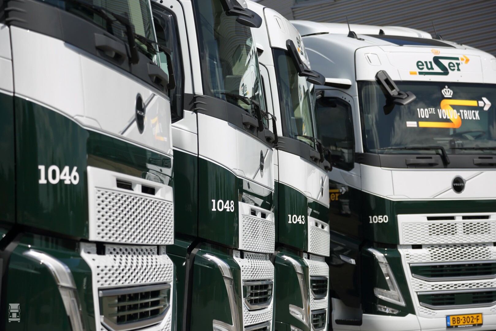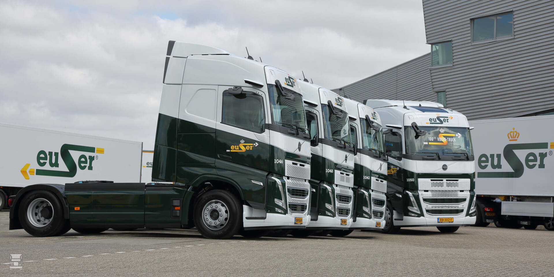 De 100e Volvo van Euser is een Volvo FH 4x2 trekker en deze truck maakt deel uit van een serie van vier. Vlootnummer 1050 is de honderste, voor de aflevering nog voorzien van een sticker op de voorruit, maar daarna alleen nog te herkennen aan het vlootnummer. Opvallend is dat Euser wel kiest voor het Volvo camera systeem maar niet voor de Aero uitvoering van de FH. Verder volgt Euser de trend om trucks op de weg te zetten zonder zonneklep.