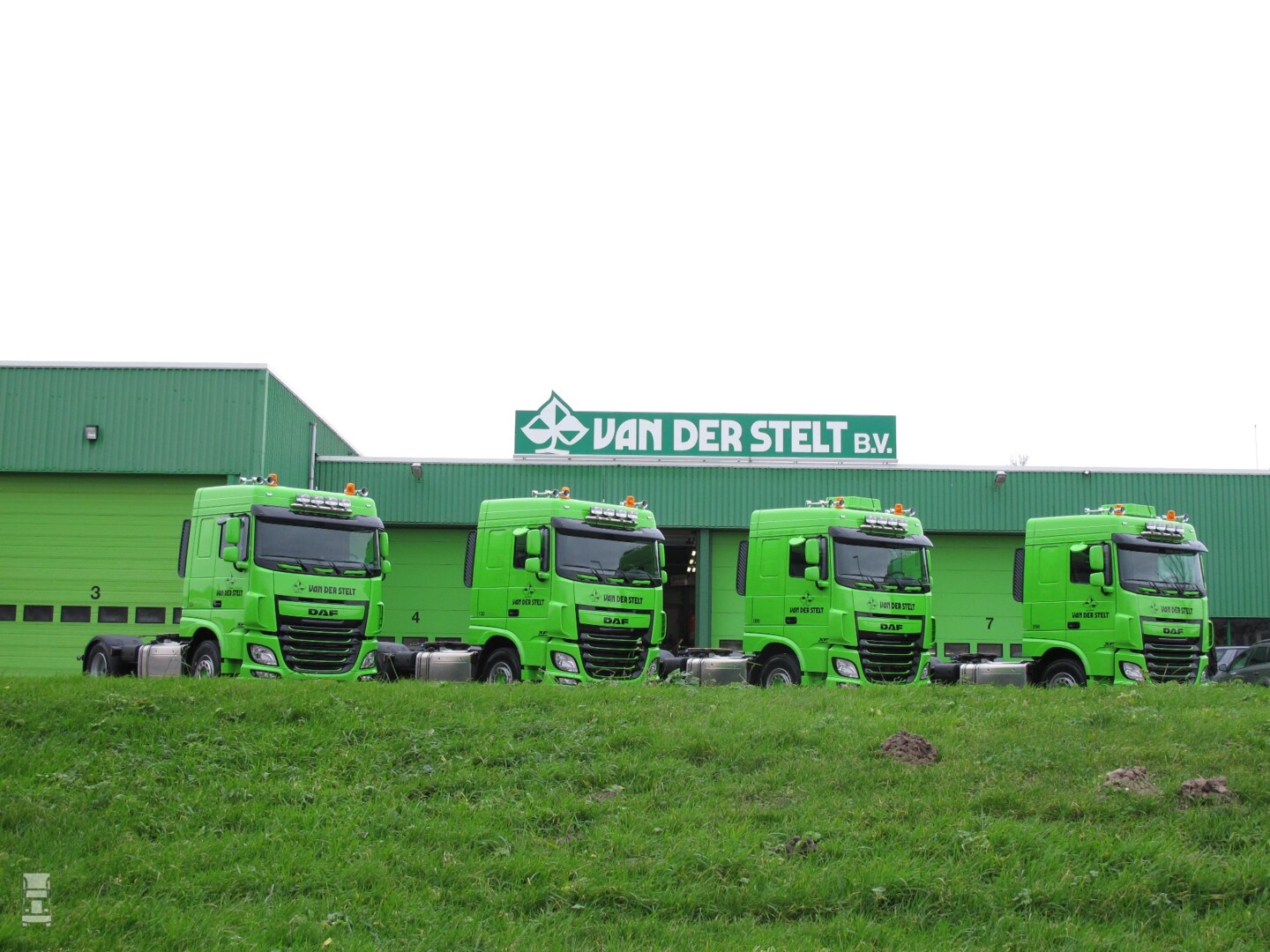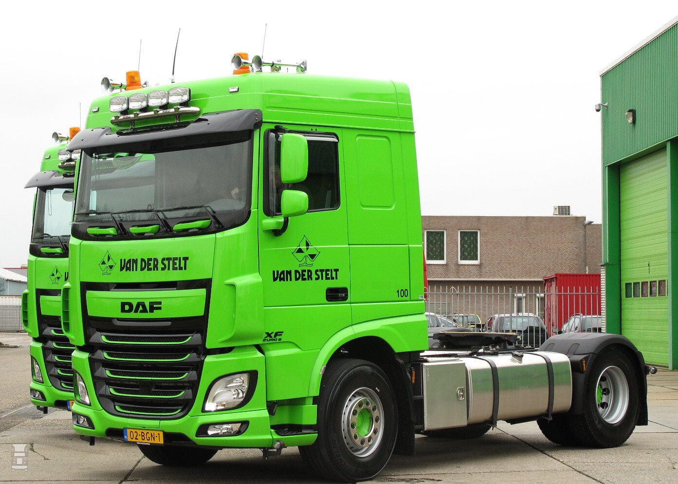 Met de levering van vier Euro 6 DAF XF 460 Space Cab 4x2 trekkers neemt Van der Stelt in Beverwijk ook de honderdste nieuwe truck binnen het bedrijf in gebruik. De helft van de nieuwe trekkers geldt als vervanging van oudere modellen, de beide andere DAF’s zijn uitbreiding op het nu 42 motoreenheden tellende wagenpark. Spuiterij Kleverlaan voorzag de cabines van de kenmerkende lichtgroene kleur en de eigen garage van Van der Stelt verzorgde de montage en afstemming van de hydrosets.