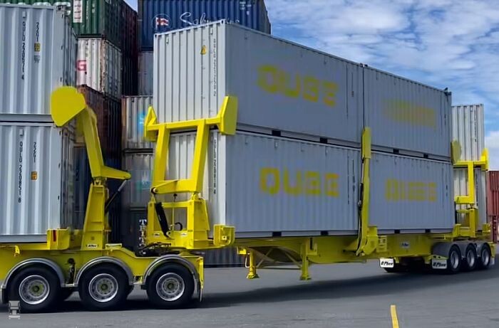 Uit de testen blijkt dat de combinatie stabiel genoeg is, en ook wind lijkt geen grote rol te spelen bij de stabiliteit. De opleggers zijn gebouwd door O'Phree. De chauffeur kan vanuit de cabine de hydrauliek bedienen die de containers op zijn plek houdt.