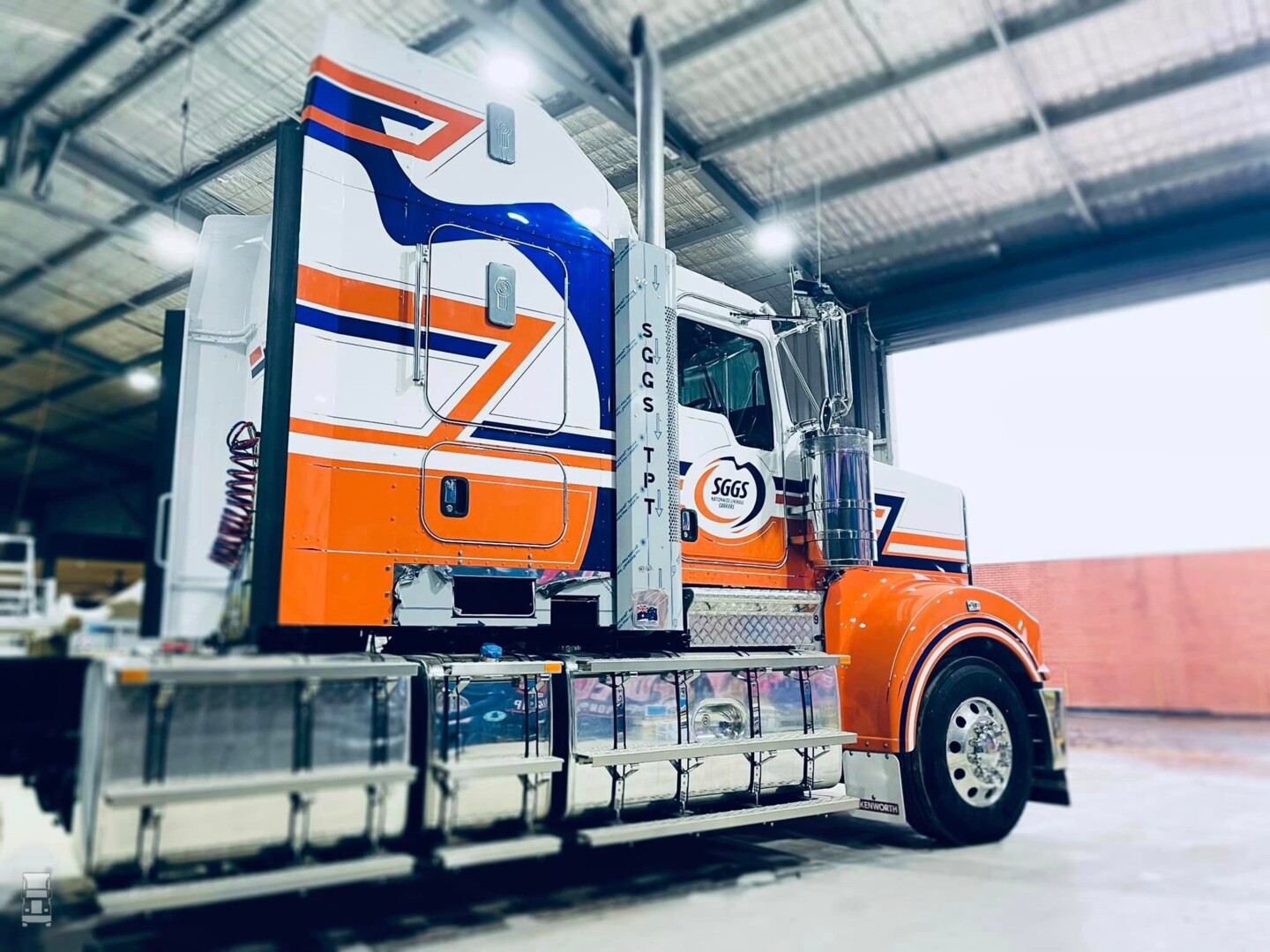 SGGS Transport is gespecialiseerd in het transport van gevaarlijke stoffen. Het bedrijf heeft naast de nieuwe Actros trekkers ook een vloot Kenworth trekkers in bedrijf. Die Amerikanen in Australische stijl zien er bijzonder indrukwekkend uit, maar delven het onderspit waar het gaat om vermogen. Onder de enorme motorkap staat namelijk een Cummins X15 motor met 600 pk.