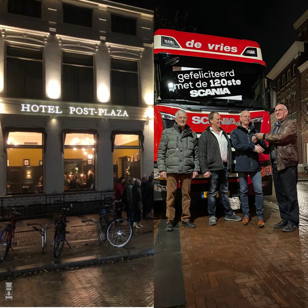 De nieuwe truck werd officieel overhandigd door oud-directeur van Rinsma, Simon Boersma. Hij verkocht 54 jaar geleden de eerste nieuwe Scania aan De Vries Hallum. “Tot die tijd reed De Vries Hallum met gebruikte trucks. Met de aankoop van deze Scania truck werd de basis gelegd voor een jarenlange samenwerking met Rinsma’’, aldus Simon Boersma.