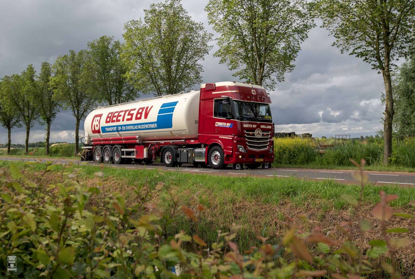 In het verkeer vallen de nieuwe Mercedes-Benz trucks van Beets BV extra op vanwege het bijzondere spuitwerk. “Al onze trucks laten we spuiten door Kleverlaan in Limmen. Chauffeur Maikel Timmer is een echte ambassadeur voor Beets en Mercedes-Benz: hij heeft het ontwerp tot in detail afgestemd in overleg met de kundige specialisten in de spuiterij. Zo krijg je uiteindelijk de trucks die je nu ziet staan. Ik vind het een stoer duo zo hoor”, zegt Aldo Beets trots.