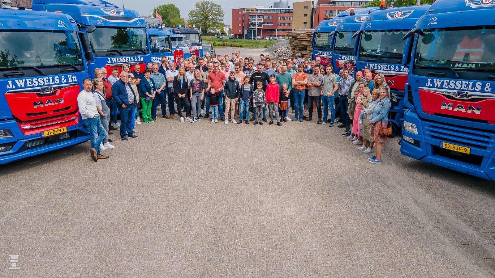 J. Wessels & Zn BV is een familiebedrijf dat zich bezig houdt met internationaal transport, coiltransport, autolaadkranen, speciaal transport en dagelijkse ritten naar België. Het bedrijf is een trouwe MAN klant, al zijn er ook een aantal andere merken in de vloot gekropen. Naast het jubileum van het bedrijf werden ook een aantal jubilarissen in het zonnetje gezet, met een 40 jarig dienstverband en een 25 jarig jubileum. Alle reden dus voor feest in Vriezenveen!