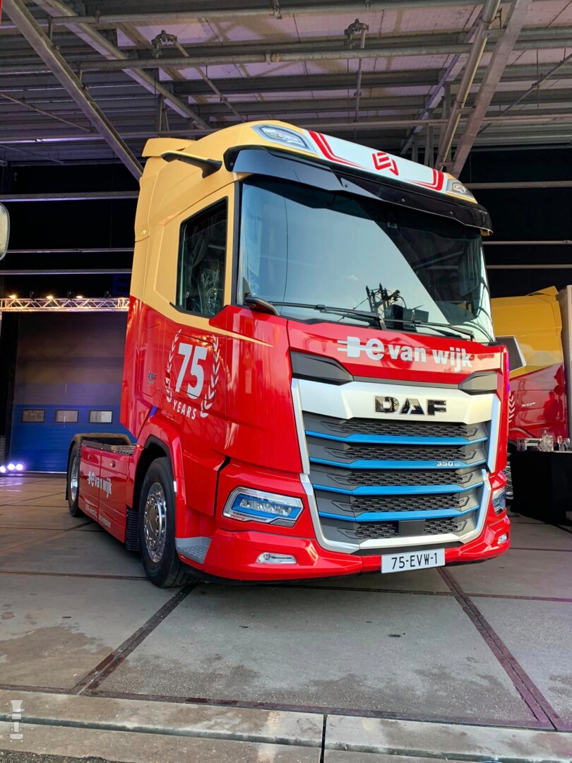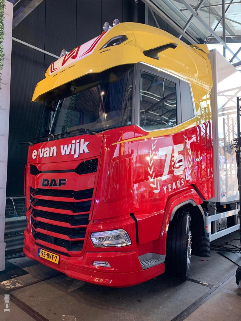 Naast de elektrische DAF XF werd ook de jubileumtruck onthuld, een DAF XG+ FAR bakwagen met koelopbouw. Net als de elektrische DAF XF heeft ook deze truck de lauwerenkrans met het getal 75 op de deur. Nieuw aan de XG+ Bakwagen is dat de grille rood gespoten is. Verder is er een verlengde zonneklep gemonteerd die geel gespoten is. Een mooie nieuwe look dus voor het bedrijf.