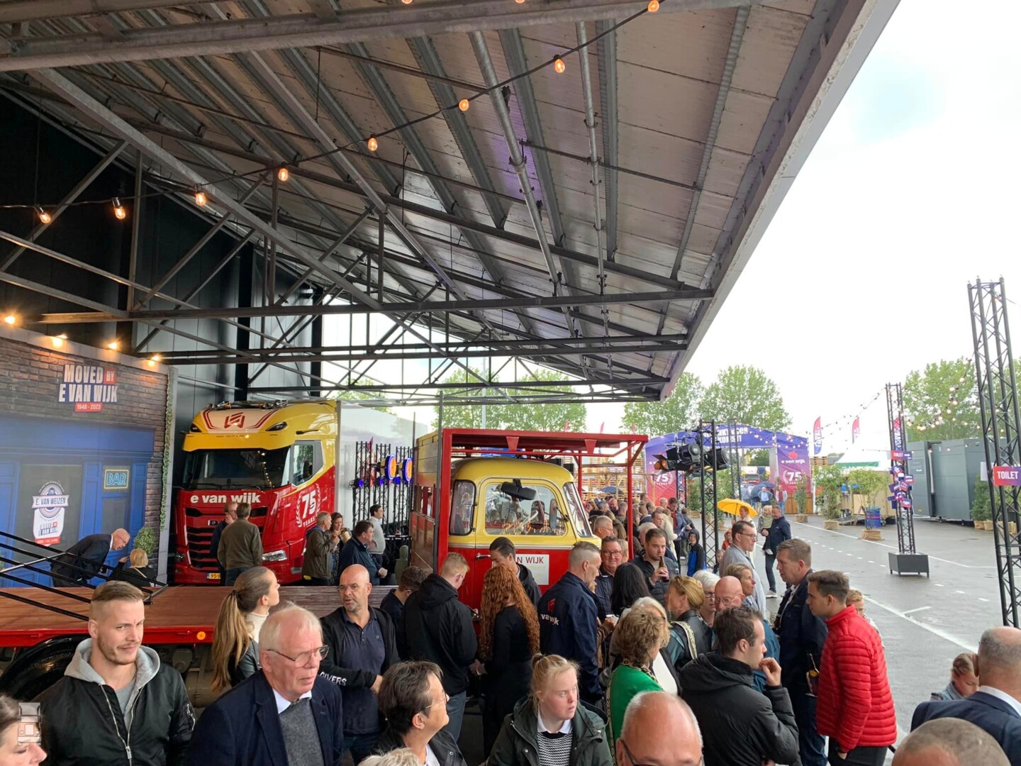 De DAF Trucks werden jarenlang geleverd door Van Hooft in Den Bosch, wat nu onderdeel uitmaakt van Truckland. Aan de foto te zien was het een gezellig feestje daar in Giessen!