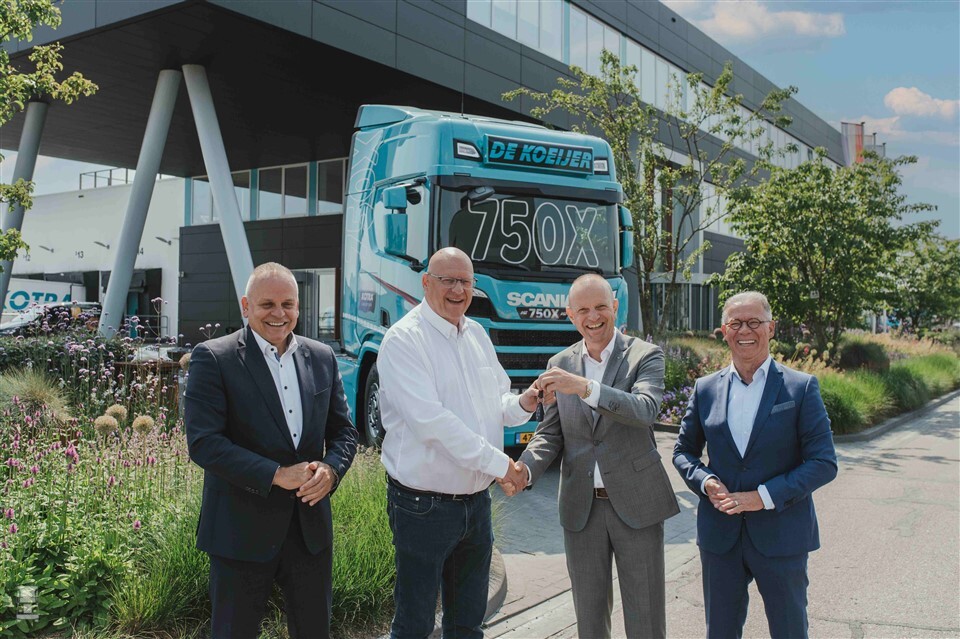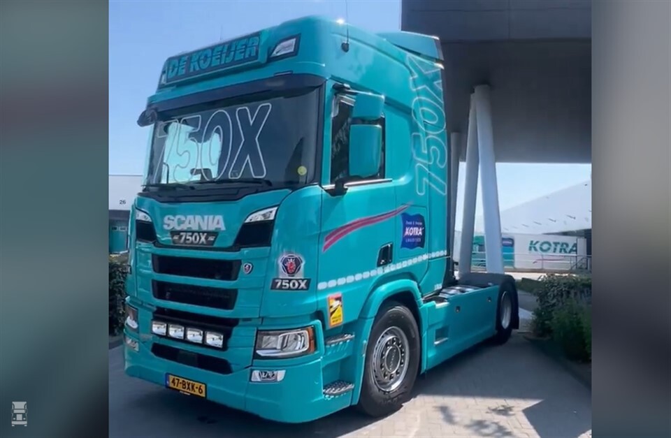 De 750e Scania is een 460R trekker. Hij maakt deel uit van een grote order. Hij is voorzien van de nieuwe Smart Dash en de zuinige Super-motor. “Wij maken veel kilometers dus een laag brandstofverbruik is belangrijk voor het investeringsplaatje. Minstens zo belangrijk voor ons is de betrouwbaarheid en de aantrekkingskracht voor de chauffeur. Deze rijden graag met Scania,” aldus Erik de Koeijer.