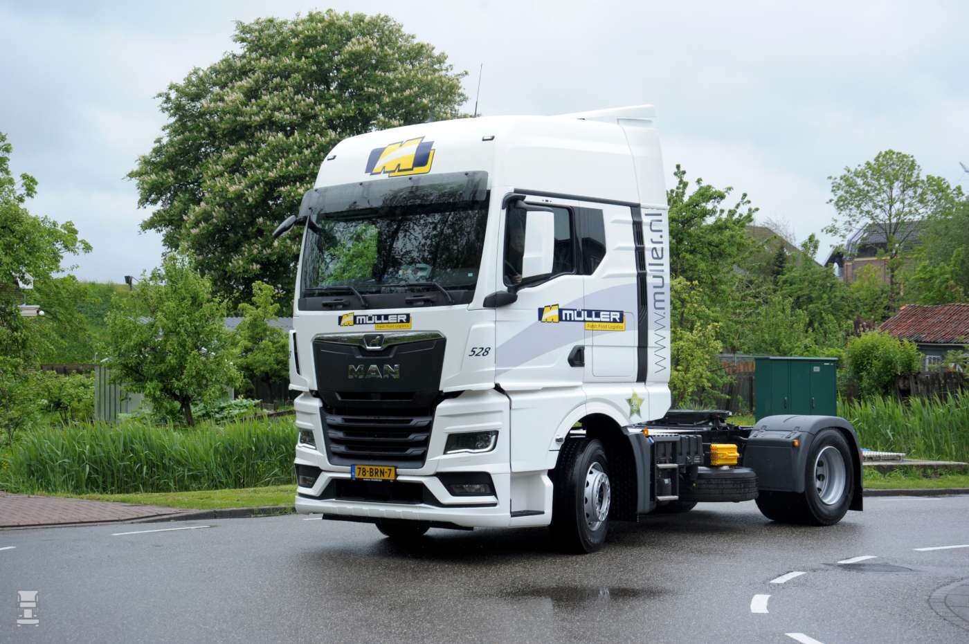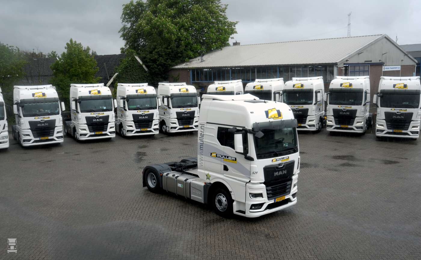 De vloot van Müller Fresh Food Logistics omvat in totaal 380 eigen trucks, waarvan een groot deel van het merk MAN is. Het bedrijf heeft vestigingen in Holten, Lekkerkerk, Roelofarendsveen, Nijkerk, Rotterdam en het Tsjechische Cheb. De trucks worden voor alle vestigingen geleverd door MAN Trucks dealer Roordink Bedrijfswagens in Barneveld. Directeur Anton Müller over zijn keuze voor MAN: ‘Wij zijn van huis uit klant bij Roordink en onze ervaringen zijn zodanig positief dat wij zaken met ze doen voor al onze vestigingen. Onderhoud en reparatie voeren we in principe zelf uit, maar daarbij worden we actief ondersteund door de lokale MAN dealers. Zo worden onze eigen monteurs bijvoorbeeld opgeleid voor deze nieuwe generatie trucks van MAN.’
