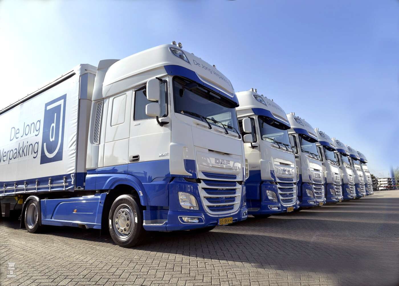 De Jong Verpakking B.V. in De Lier rijdt al sinds de oprichting in 1995 met DAF trucks. Onlangs zijn er in één keer maar liefst acht nieuwe DAF XF 450 FT Super Space Cab trekkers afgeleverd door dealer Truckland Rotterdam.
