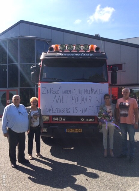 Bij Wezenberg is chauffeur Aalt van Putten gehuldigd. Hij is veertig jaar werkzaam bij dit bedrijf, maar nog zeker niet aan zijn pensioen toe. Hij rijdt voornamelijk nationaal met aardappelen, groente en fruit.