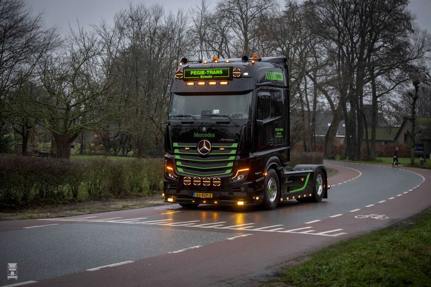 Het is voor het eerst dat Pegie Trans kiest voor een truck van Mercedes-Benz. Het bedrijf heeft deze gelegenheid dan ook maar meteen aangegrepen om de Actros te voorzien van de nieuwe bedrijfskleuren: zwart met groene belettering. Eigenaar Peter Gielen: “In deze tijden is ‘tevreden houden’ eigenlijk niet meer genoeg om personeel aan je te binden. Wij zetten graag een flinke stap extra en al helemaal voor onze fijne collega Jeffrey Schouten. Dat is met deze dikke Actros toch wel héél goed gelukt.”