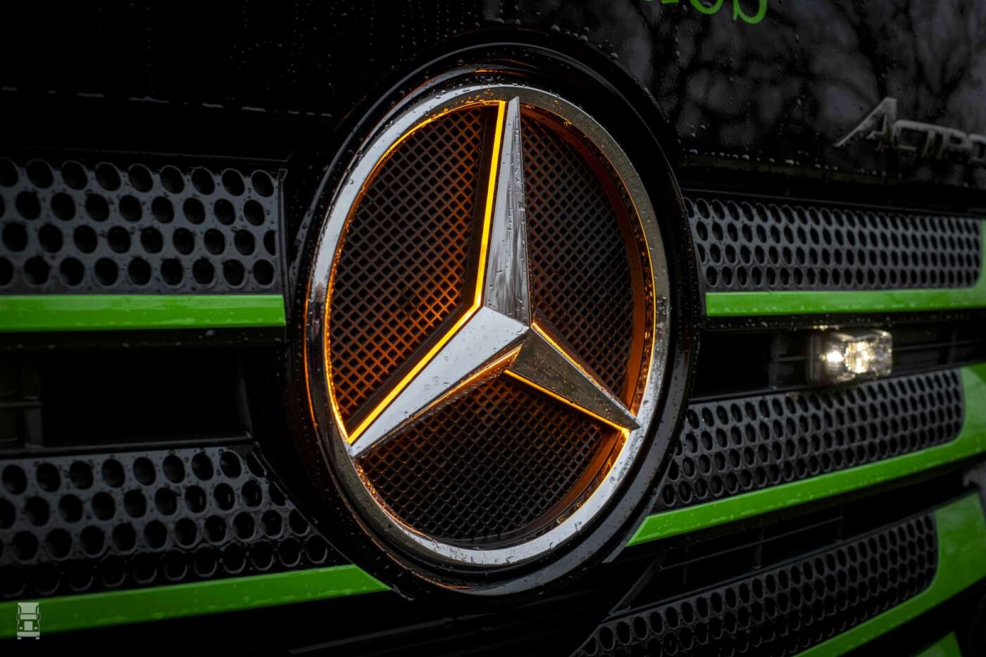 De fraaie nieuwe, volledig luchtgeveerde trekker is voorzien van de 530 pk krachtbron, lederen bekleding en het uitgebreide led-sfeerpakket. Verder is er een verlichte ster, een luxe soundsystem, led-verlichting rondom én de zeer gewilde en stijlvolle Alcoa Dura Bright-velgen. “We hebben hem geheel naar wens van de klant compleet opgebouwd. Zo is het dak van de cabine verfraaid met onder meer lange luchthoorns, oldschool lichtbak, zwaailampen en aluminium zonneklep. Op het chassis brachten we 4 breedtepaaltjes aan, evenals zwart gespoten traanplaat en werkverlichting. Ook het front heeft cosmetische upgrades gekregen, zoals de in bedrijfsgroen gespoten lamellen in de grille, een onderlip van het type Solarguard en lampjes in de grille in lijn met de toplampjes. Als klap op de vuurpijl brandt de ster in een afwijkende kleur dan het wit dat we kennen: het is op deze Actros oranje!”, vertelt een trotse Paul Leerkes.