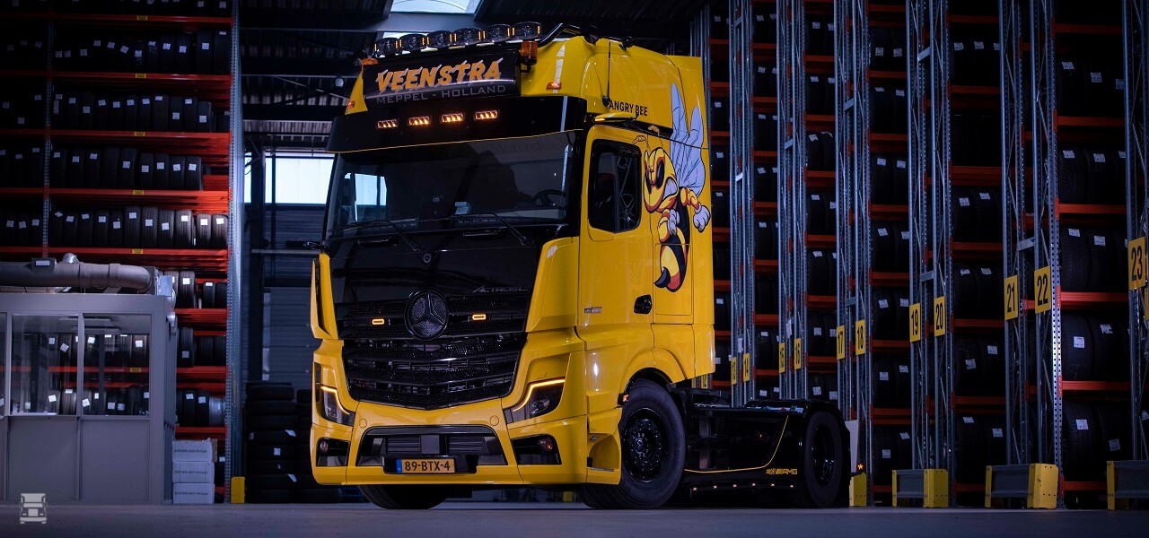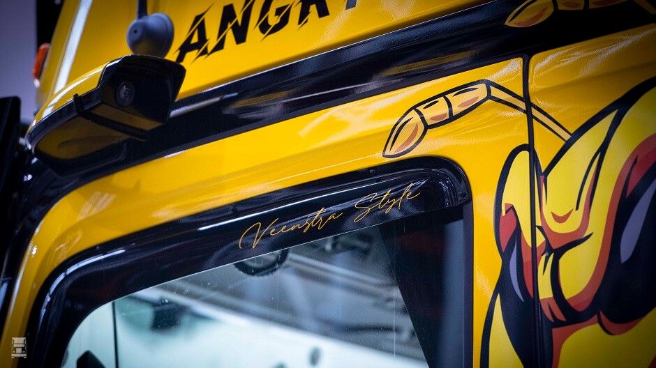 De trekker werd uitgevoerd in het AMG Thema met zwarte accenten en opschriften. De 'Angry Bee' is het logo van een Amerikaans collegeteam en dat past mooi bij de zwart- gele kleurstelling van de trekker. Verder werd er gekozen voor het Mirrorcam systeem, en ook die camera's ontkwamen niet aan het thema. De truck wordt voornamelijk ingezet voor transporten van- en naar Scandinaviƫ.