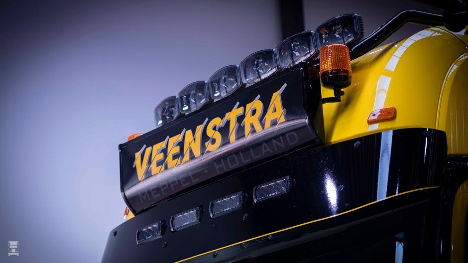 De eerste trekker was spierwit, de tweede matzwart en de nieuwe is knalgeel met zwarte accenten. Cornelis ging voor het topmodel, de GigaSpace met 639 pk. De volledig luchtgeveerde trekker werd verder voorzien van het hele boekje aan accessoires, compleet met een lederen meubilair en een puike audio installatie.