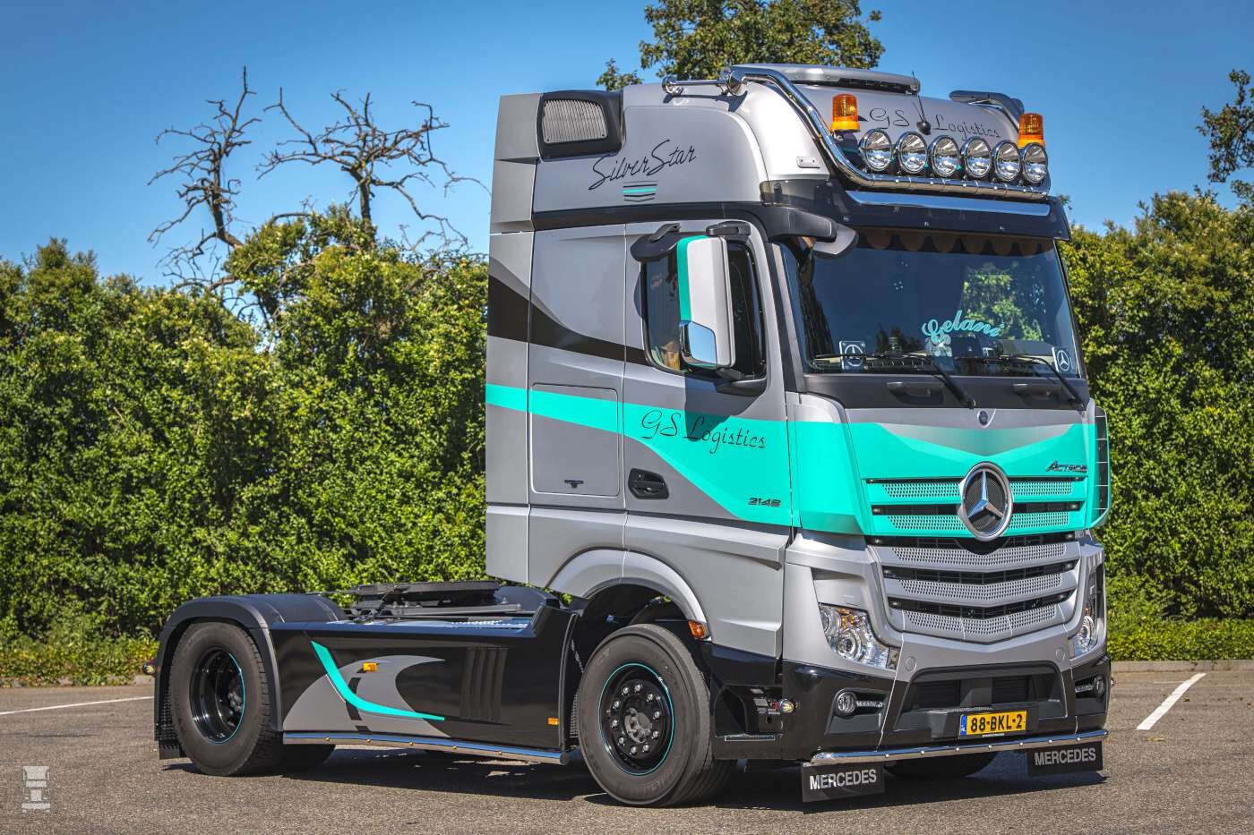 GS Logistics rijdt sinds enige tijd met een Mercedes-Benz Actros 2148 LS Silver Star. De eerste kilometers staan al op de klok, maar de nieuwe Actros van GS Logisctics voelt voor chauffeur Alex Kroese nog iedere dag als een feest. De Mercedes-Benz truck heeft naast alle bekende eigenschappen van de Actros een unieke striping en een waslijst aan extra’s.