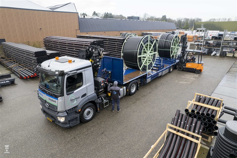 De Mercedes-Benz Actros 2140 is gekoppeld aan een semi-dieplader en rijdt met buizen, haspels en kabeltrekputten met een lengte tot 12 meter door heel Nederland. Vanwege een toegenomen vraag naar de producten moest Inoplast investeren in groter materieel. Het bedrijf is tevreden over de twee eerdere Actrossen en kwam daarom weer bij Mercedes-Benz terecht. Daarbij kon dealer Gomes de Actros ook nog eens snel leveren.
