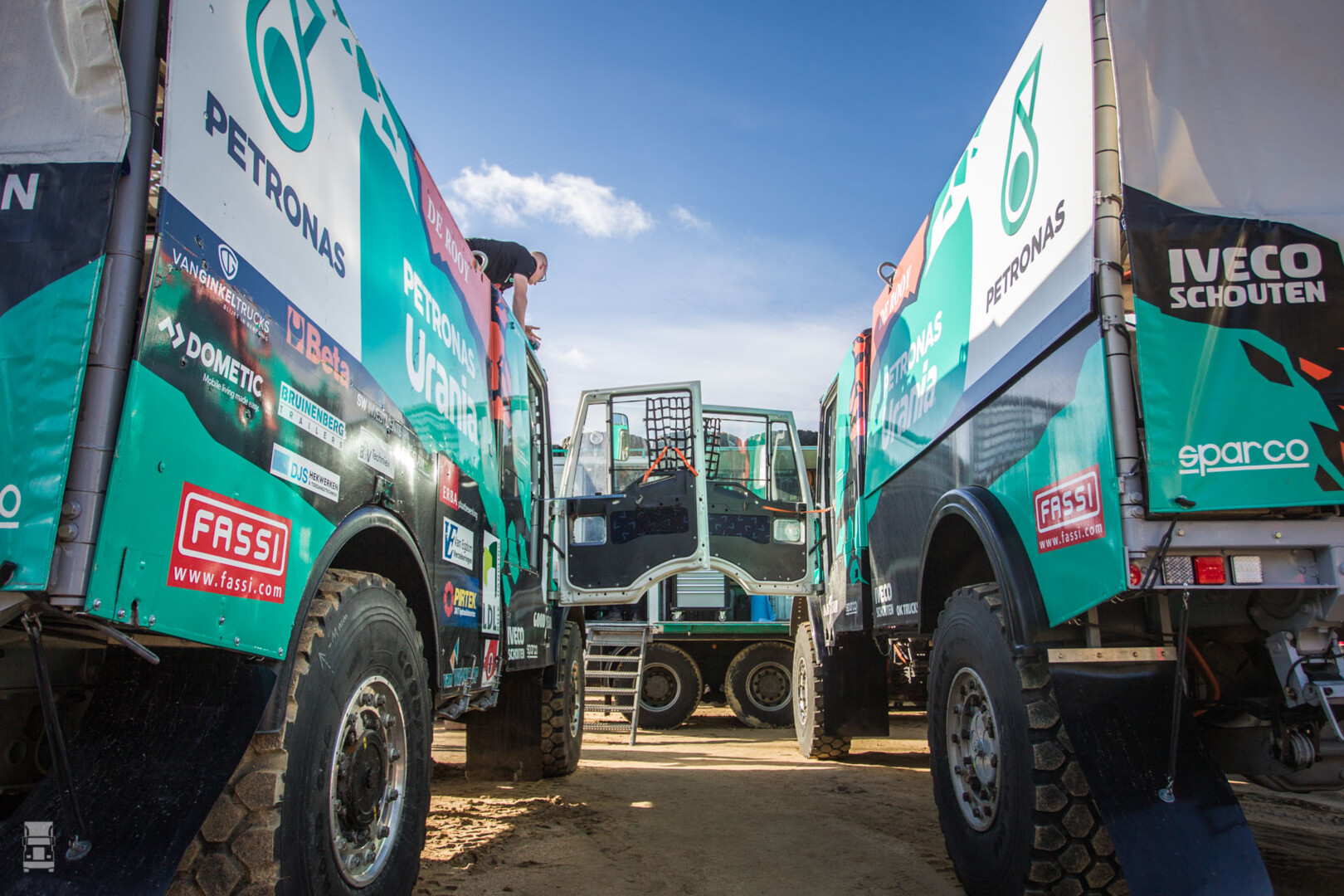 De laatste stickers plakken, de trucks wassen, even prutsen met het installeren van de gps, maar toen kon Petronas Team De Rooy Iveco dan toch naar de keuring voor de Africa Eco Race. Na een gedegen voorbereiding staan Gerard de Rooy en Wuf van Ginkel met hoge verwachtingen aan de start van de rally die morgen in Monaco begint.