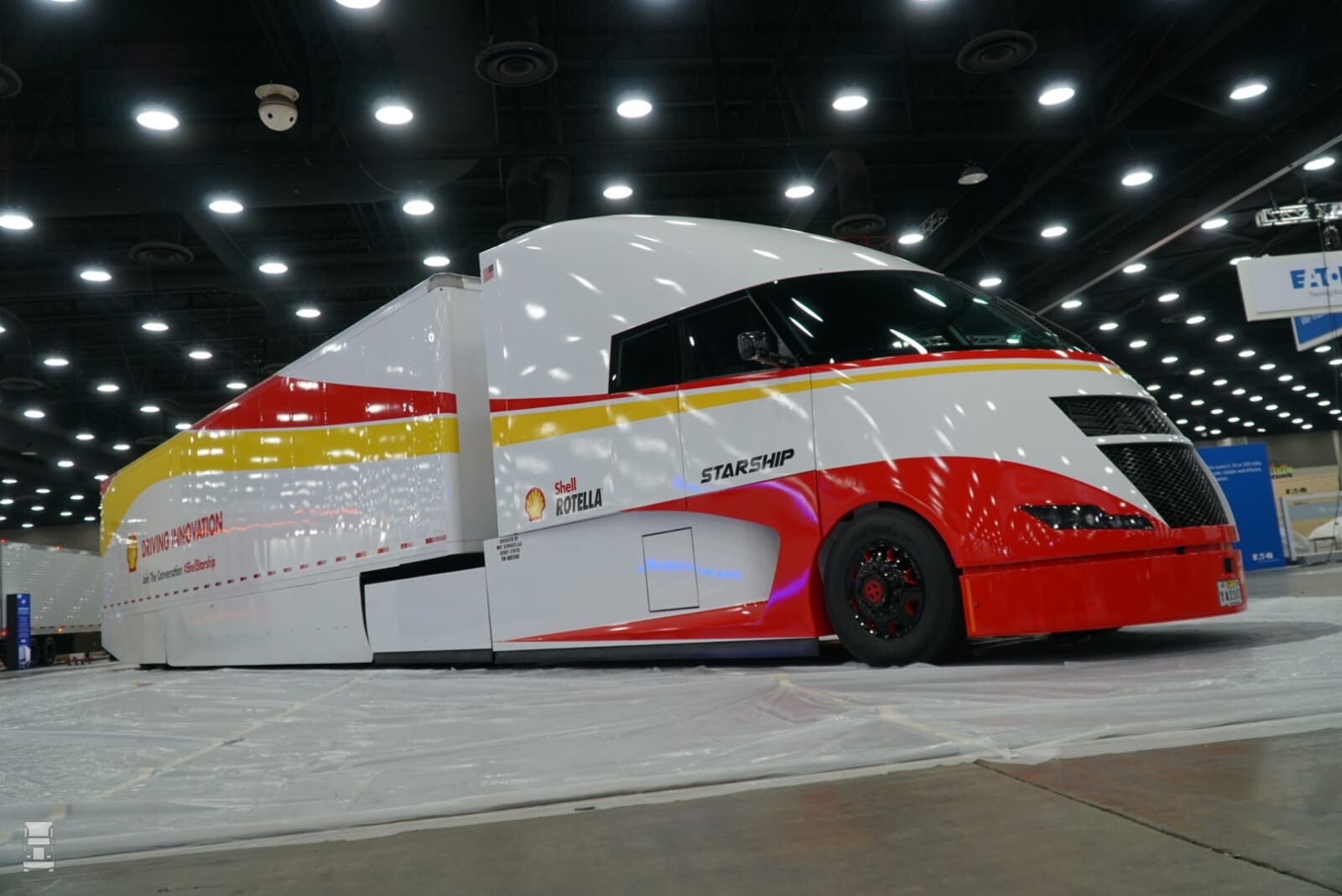 Stroomlijn is één van de belangrijkste aspecten als je een truck zuiniger, en schoner wil maken. Helaas verhindert de Europese wetgeving het optimaliseren tot in het extreme. Daar hebben ze in de USA geen last van, en daardoor kun je daar een truck vormgeven als een gigantische zetpil, zoals deze Starship.