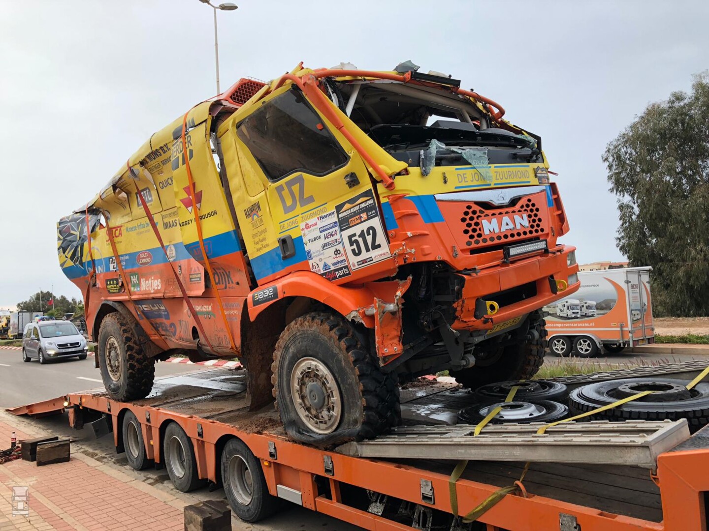 Een dag eerder ging de MAN van De Jong Zuurmond aan de rol, hoogstwaarschijnlijk door de gladde omstandigheden, omdat de rally na een week in het hete stof, ineens in de nattigheid terecht is gekomen.