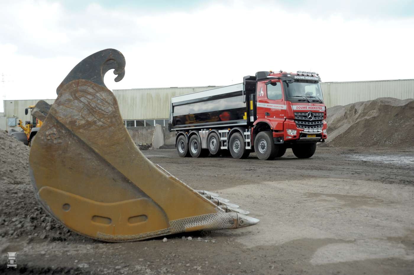 Douwe Hoekstra Kraanverhuur en transport werd in 1980 opgericht en het bedrijf is sindsdien uitgegroeid tot een gerenommeerde speler in de markt van het grondverzet en transport. Naast de vloot van 13 eigen voertuigen beschikt het bedrijf over een uitgebreid machinepark met dumpers, graafmachines, tractoren en zogenaamde moerasdumpers. Voor de vervanging van een Terberg 10x8 passeerden meerdere merken de revue maar aanbevelingen van collega vervoerders en de voorkeur van de vaste chauffeur, Gjalt Bergsma leidden tot de aanschaf van de Arocs. De nieuwe Arocs is nu de enige Mercedes-Benz in de vloot, maar eerder deed het bedrijf al prima ervaringen op met de vorige Actros modellen.