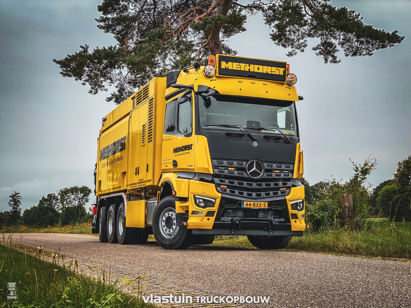 De nieuwe Arocs trucks zijn 8x4 chassis met 630 pk. De trucks zijn in verschillende uitvoeringen geleverd, met zowel de smalle als de brede Arocs cabine. De opbouw van de trucks werd uitgevoerd door Vlastuin Truckopbouw, met onder meer een stoere lichtbak en extra verlichting zoals werklampen.