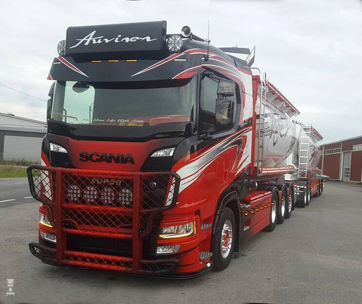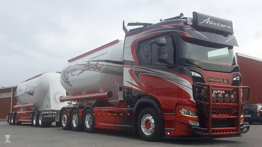 De Finse vervoerder Auvinen kennen we vooral van de bizar uitgedoste Mercedes-Benz bulkcombinaties. Nieuw is dat het bedrijf nu een nieuwe Scania V8 inzet voor het bulktransport. De Scania ziet er geweldig uit maar Auvinen bleef heel wat dichter bij het origineel dan wat we van hem gewend zijn.