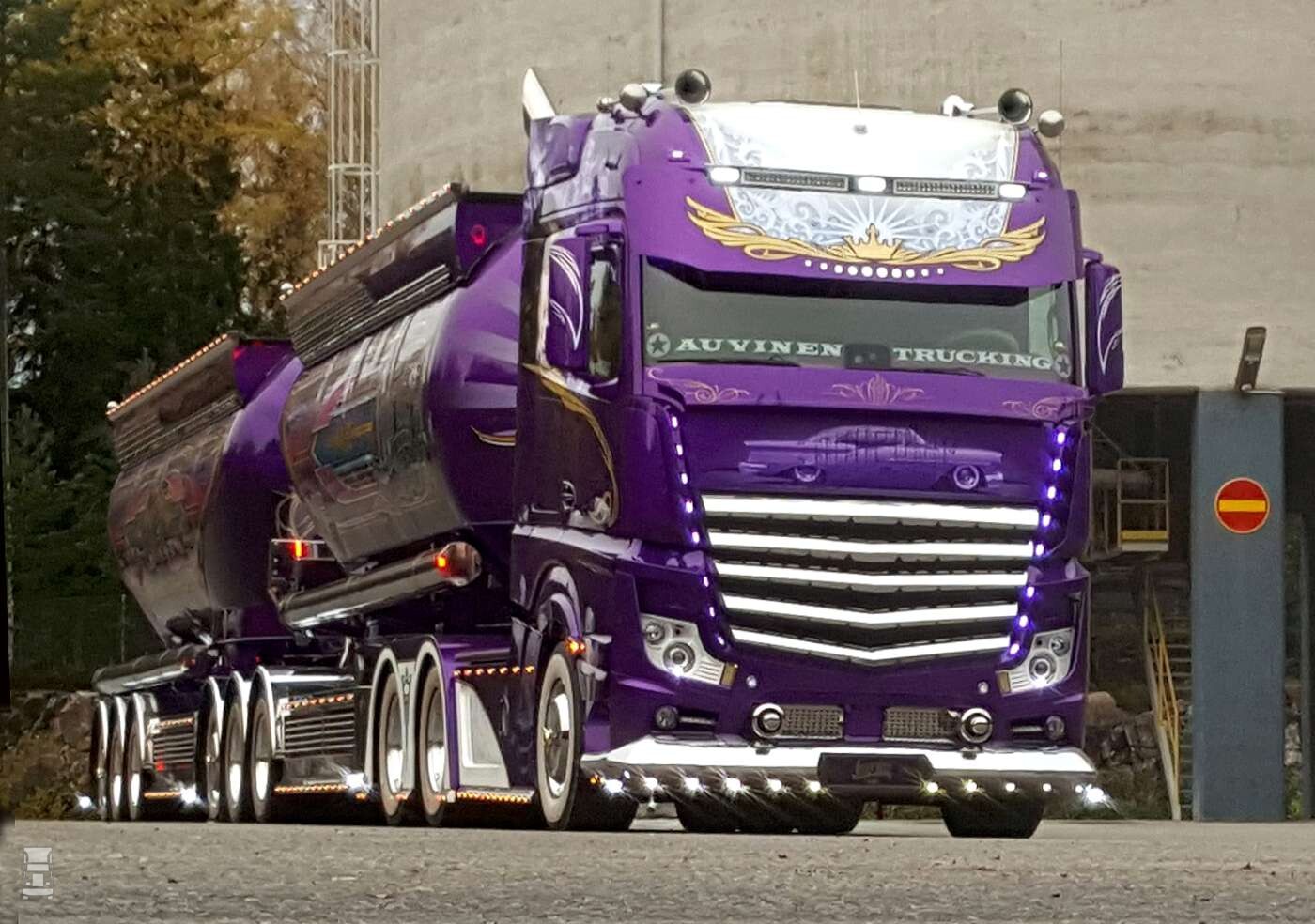 De Actros is al het zoveelste project van Auvinen en ook deze is weer volledig over de top. Of je er nou van houdt of niet, het is een waar rijdend kunstwerk met ongelofelijk veel aandacht voor details en een afwerking waar je helemaal eng van wordt. Het is dan ook onvoorstelbaar dat er met deze truck gewerkt wordt in het vaak barre Finse klimaat.