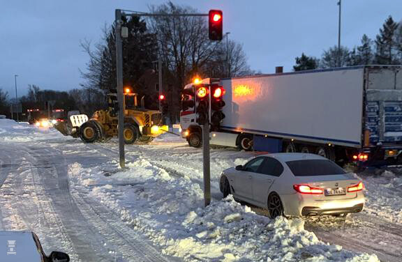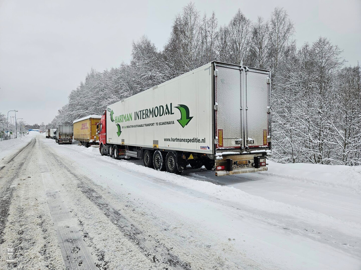 Ondanks de enorme files en de overlast door de sneeuw weten de trucks van Hartman Expeditie en J.P. Vis & Zn er desgevraagd nog aardig doorheen te komen. Directeur Ronald Hartman: ,,Wij krijgen berichten van onze klanten dat ze het heel knap vinden dat we ze toch weten te bereiken. Ik heb dan ook veel respect voor onze chauffeurs die er in slagen om het hoofd te bieden aan de barre omstandigheden.’’ Hij stuurde bijgaande foto’s ter illustratie.