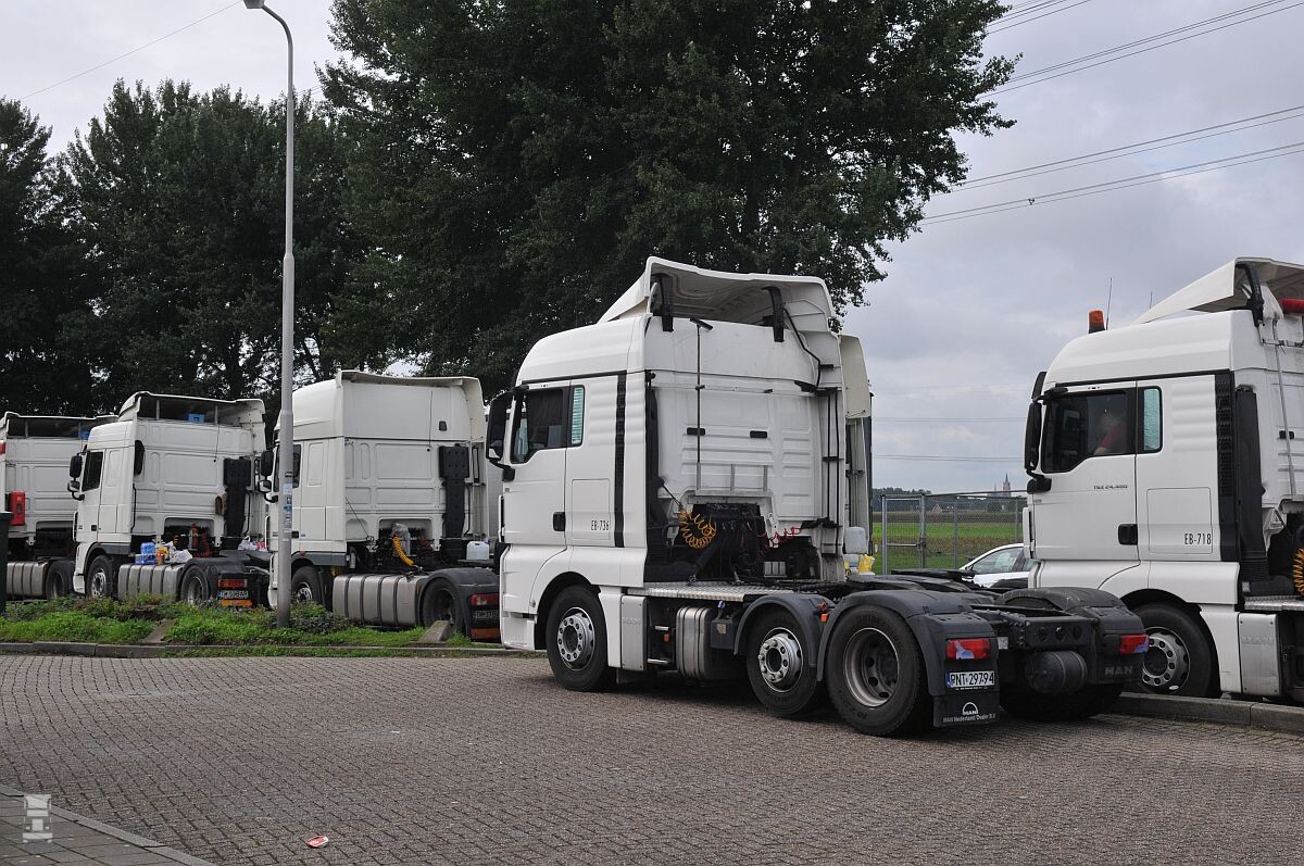 Foto's gemaakt op een zaterdag op een Nederlandse parking, waar niet wordt gehandhaafd op weekendrust in de cabine, niet ver van de Belgische grens.
