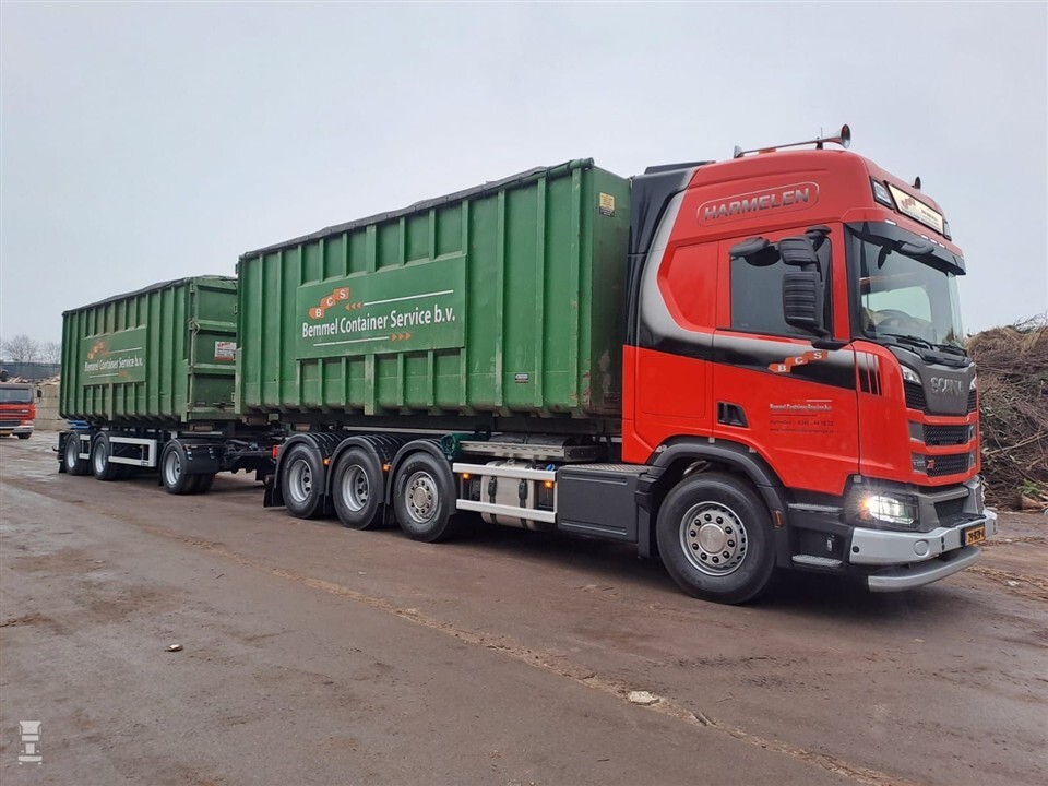 Chauffeur Gerrit mag met een strak span onderweg: zowel de Scania bakwagen als de aanhanger van GS Meppel zijn nieuw. Bemmel Container Service, met vestigingen in Harmelen en Montfoort, besloot te investeren in een combinatie met een haakarmsysteem, dat geleverd werd door VDL. Een flinke verandering ten opzichte van de kabelsystemen die het bedrijf jarenlang gebruikte voor het op- en afzetten van containers.