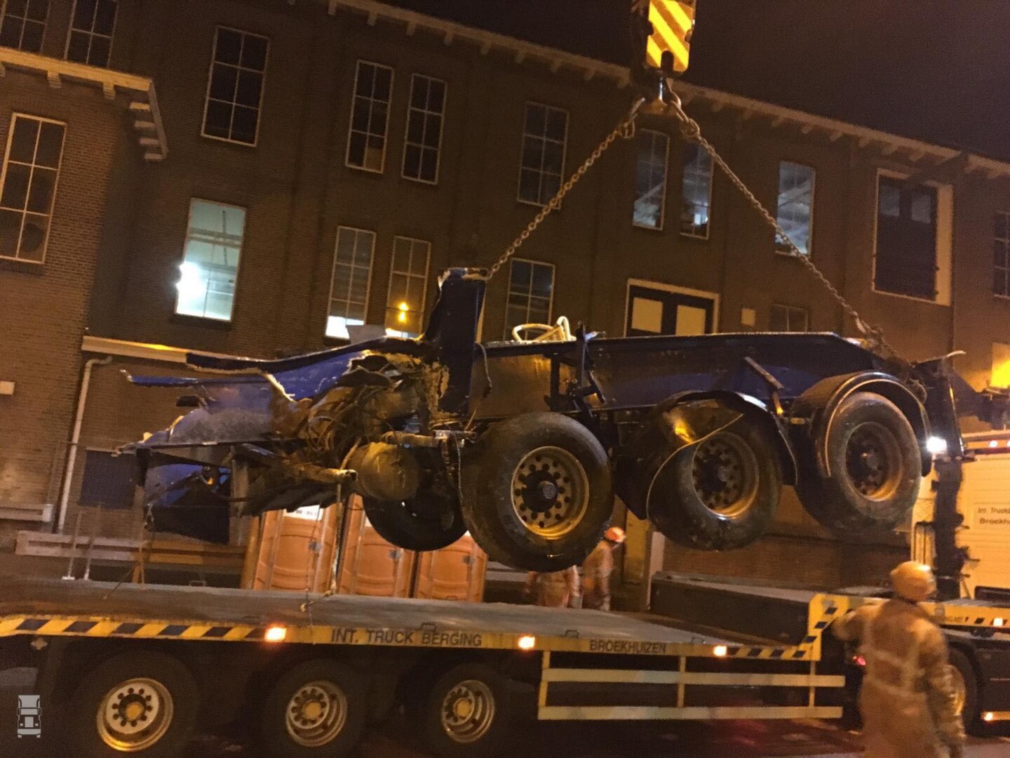 De berging van de brokstukken en de trein is meteen dezelfde nacht nog uitgevoerd door Mammoet. Je ziet hier de foto's van de ravage, en nee, het sneeuwde niet in Leeuwarden. Wat je ziet is puur de melkpoeder. Inmiddels is het treinverkeer op de lijn Leeuwarden Groningen weer op gang gekomen.