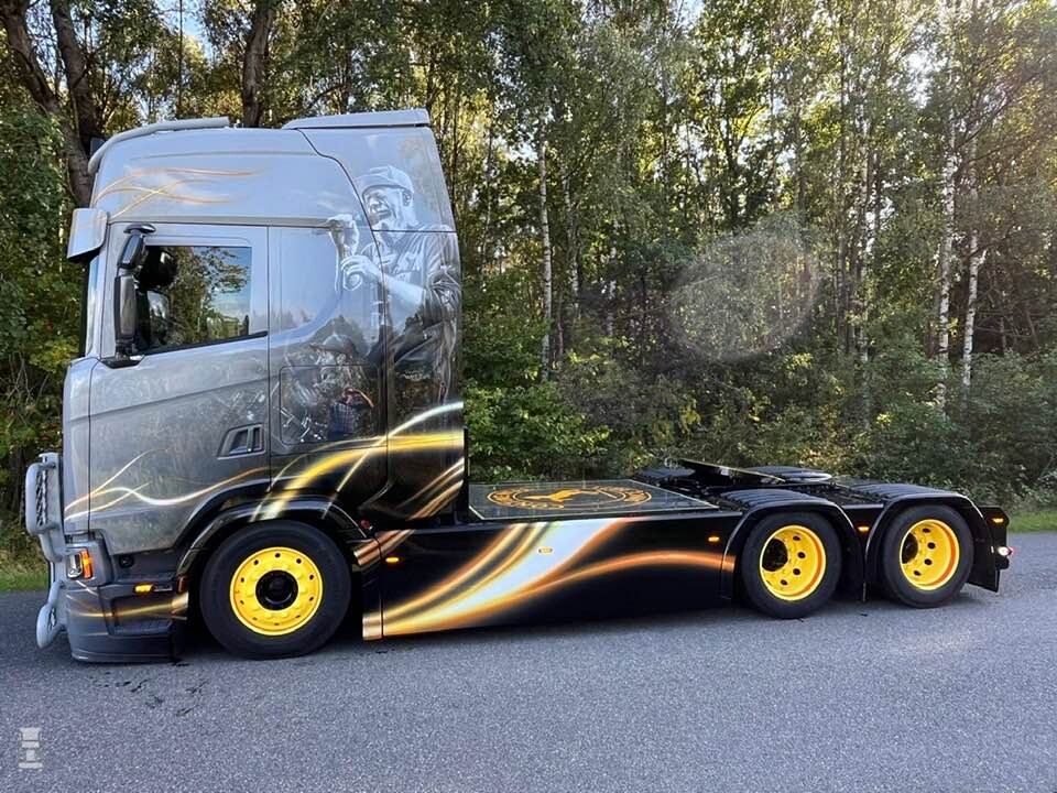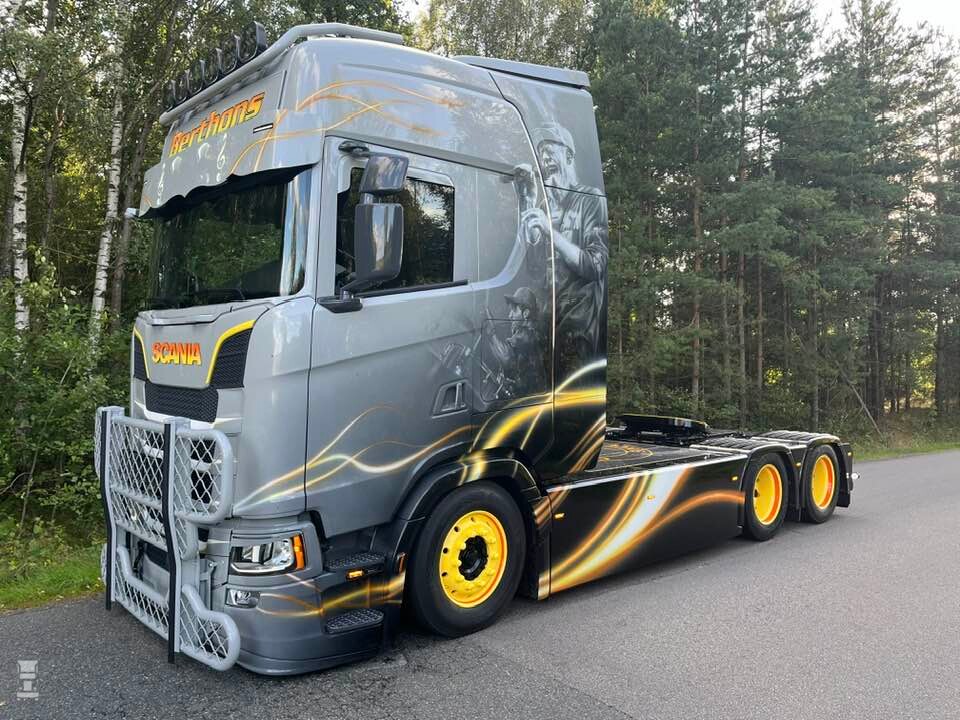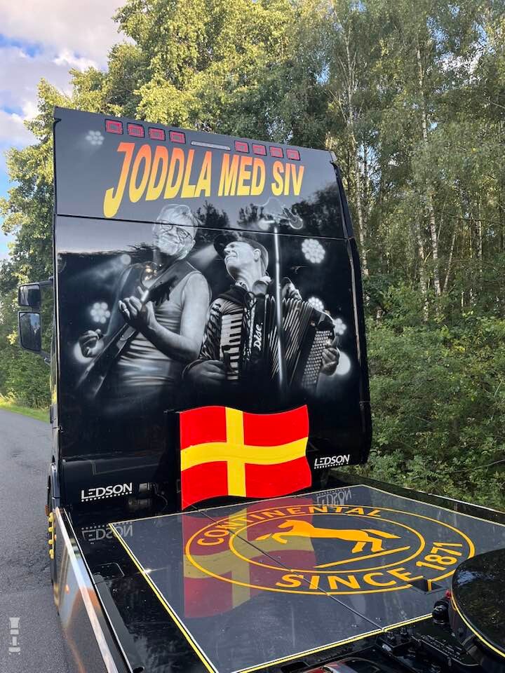 Wat voor type het is blijft onduidelijk, maar het zal vast om een Scania V8 gaan. De cabine is aan het interieur te zien de verlengde versie van Laxa, de XXL cabine. De truck is opvallend strak gehouden en heeft een extra lange wielbasis. Verder is er een vlakke achterwand tegen de cabine geplaatst waardoor de special paint daarop mooi uitkomt. Een wel heel bijzonder detail is de zonneklep. De Nordic Trophy in Jönköping is op dit moment in volle gang en beleeft morgen, 25 augustus zijn laatste dag.