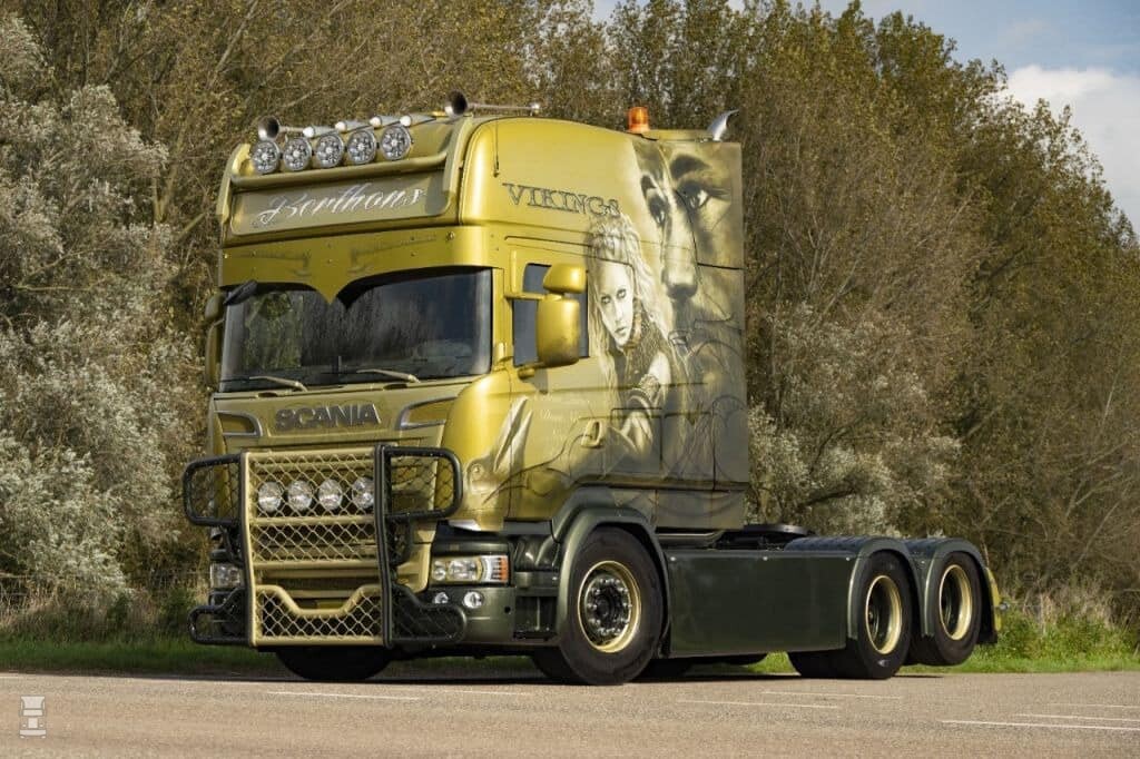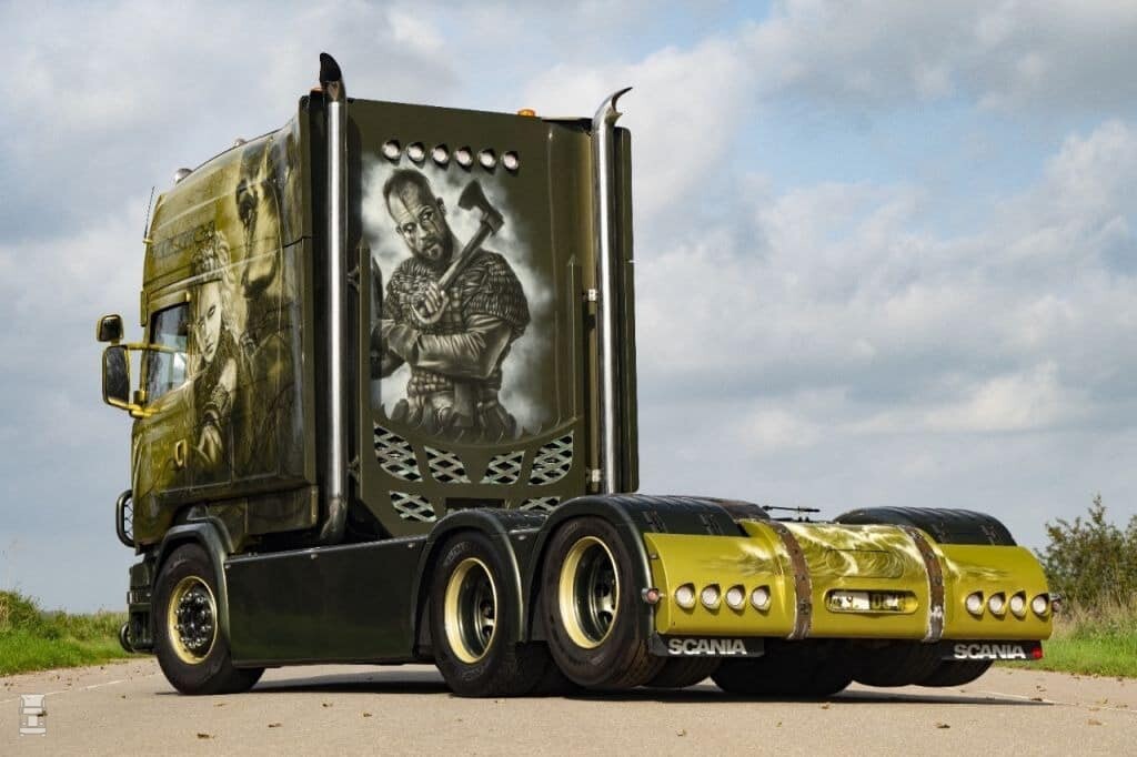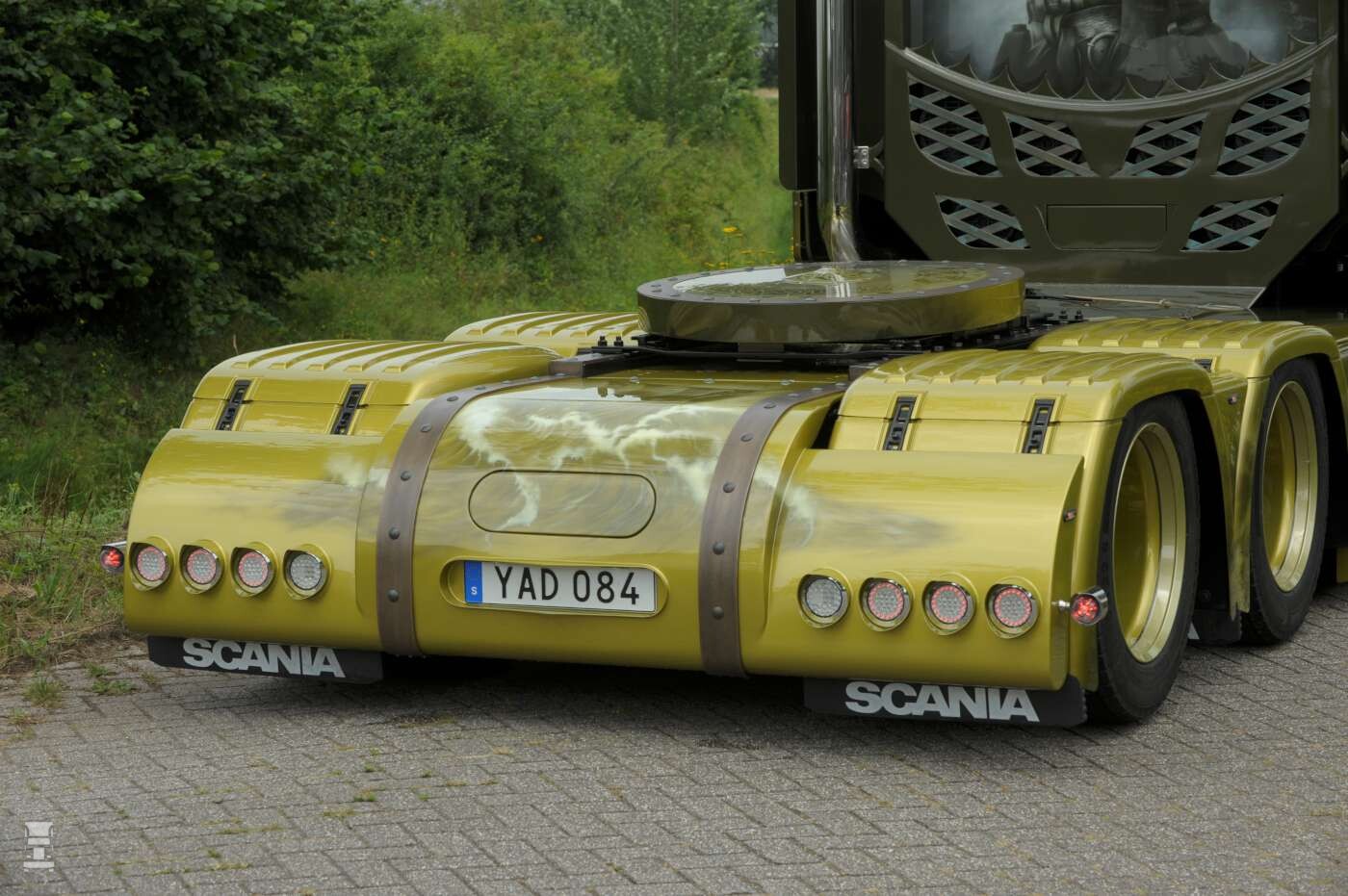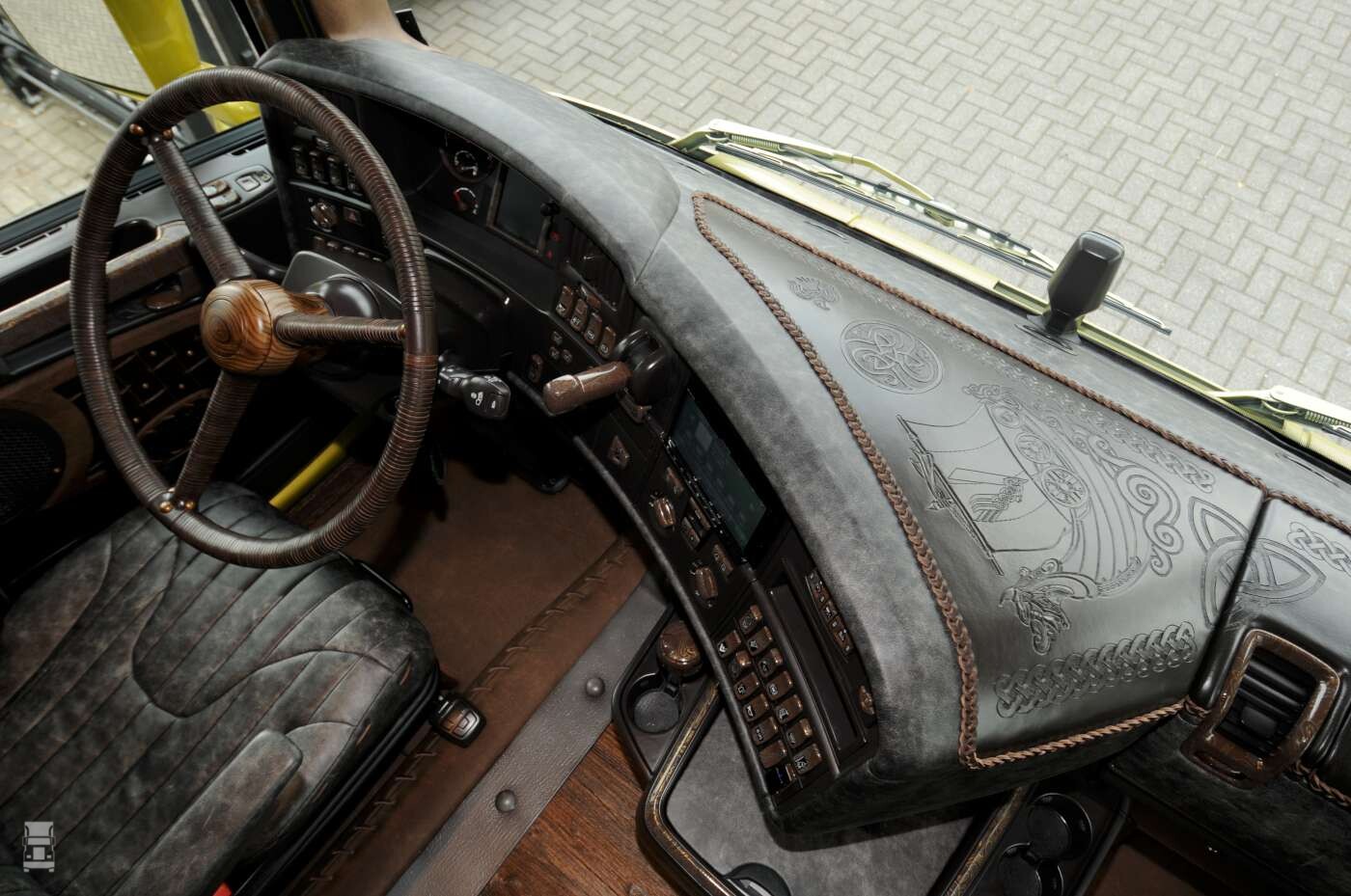 De Scania R580 Longline heeft een door Van Winkoop met 70 cm verlengde cabine, een fantastisch interieur van Special Interior en spectaculair spuitwerk van MWDesigns. De afbouw van de truck en het hele chassis, met die fraaie spatborden werd gedaan door Steve's Place. Deze unieke Euro6 sleepasser staat nu te koop, inclusief alle opties bij VSB.