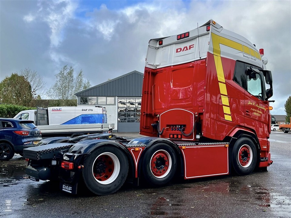 De cabine werd rood met wit gespoten, met de kenmerkende gele strepen op de zijkant. Zoals het bij Swijnenburg betaamt, werd de grille glimmend zwart. De XG+ kreeg ook een eindeloze lijst accessoires gemonteerd. We zien een lichtbak, vier luchthoorns, rode zwaailampen, hoekschilden, onderspoiler met extra verlichting. Aan de achterkant kreeg de DAF op verschillende plaatsen bloklampen. Het resultaat mag er zijn!