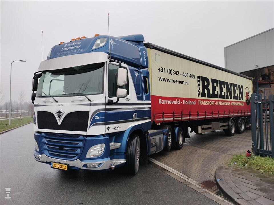 Al op afstand was te zien dat er iets bijzonders stond te lossen. Is dat nu een Foden? Maar dat Engelse merk maken ze toch al zo’n 20 jaar niet meer? Omdat zowel Foden als DAF onderdeel waren van Paccar, maakte het Britse merk wel gebruik van de CF-cabine. Zo nieuw als deze hier heeft echter nooit als Foden rondgereden. Vol vragen spraken we de chauffeur aan.