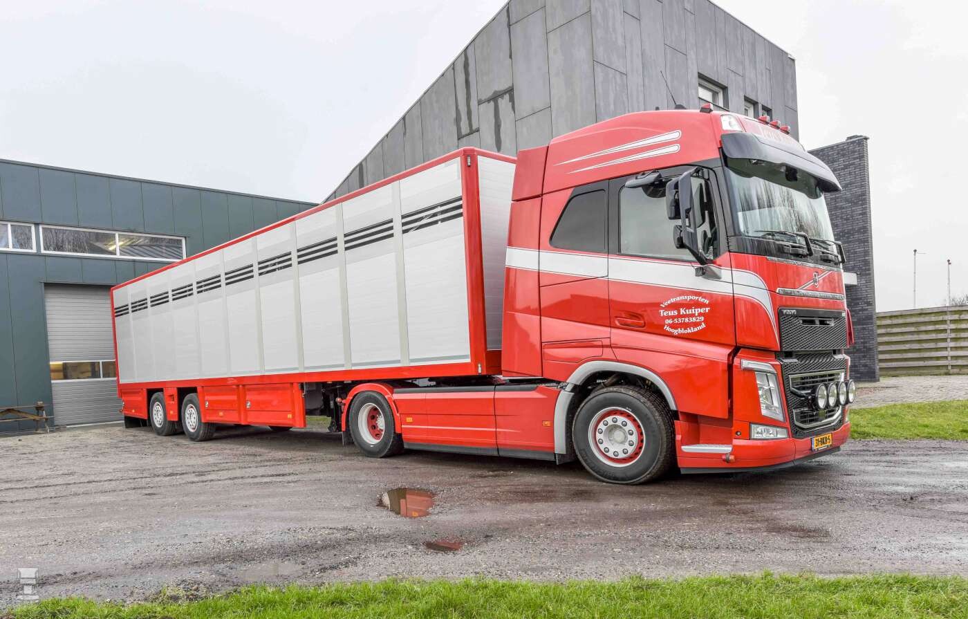 Teus Kuiper veetransport uit Hoogblokland heeft een fraaie compacte veetrailer laten bouwen door Schaap Carrosserie in Tijnje. De 12,50 meter lange oplegger is voorzien van twee zware gestuurde fuseeassen waardoor hij bijzonder wendbaar is.
