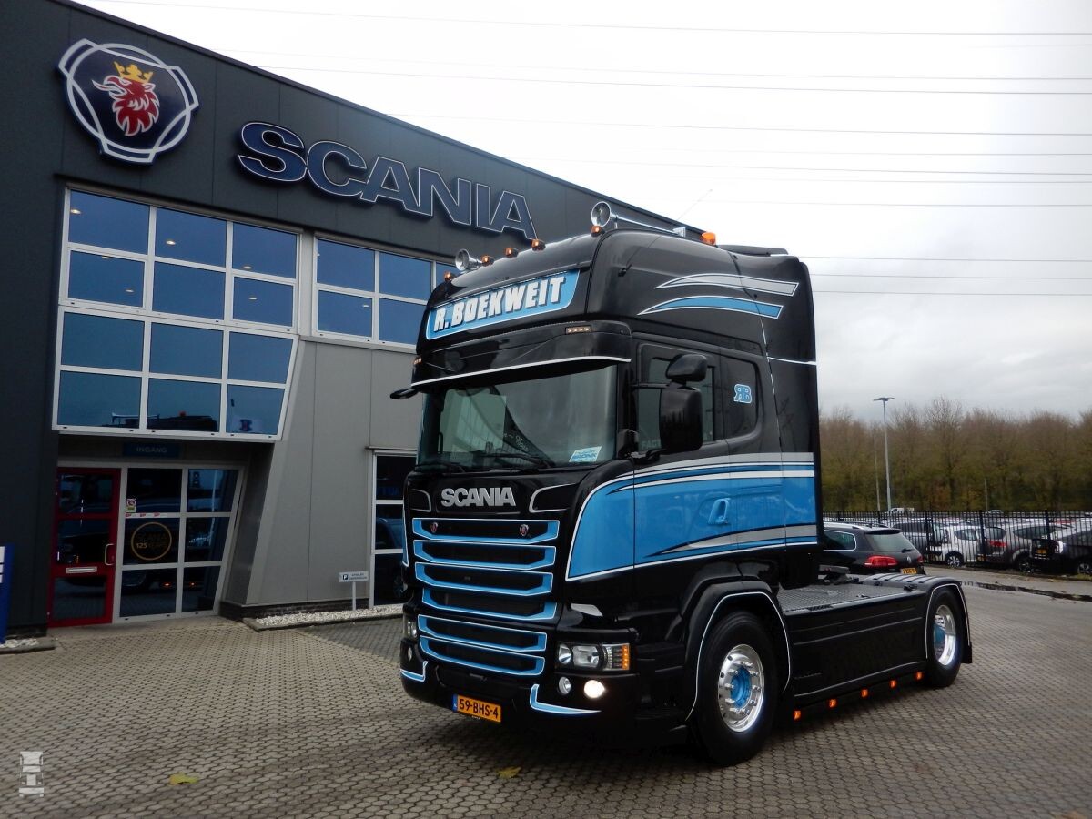 Eigen rijder Richard Boekweit heeft zijn Scania R500 V8 ingeruild voor een zes cilinder SCR Only R450. Nog niet het nieuwe type, maar wel met uitstraling.