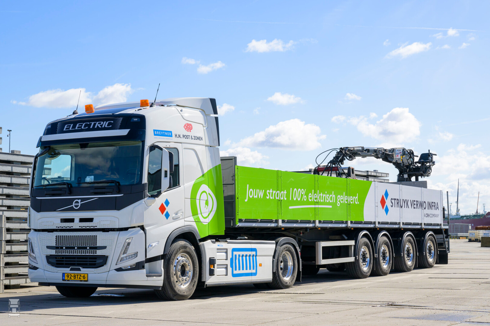 De beide bedrijven werken samen met Struyk Verwo Infra voor het vervoer van betonproducten naar de binnensteden van Den Haag, Rotterdam en Dordrecht. Daarvoor wordt een elektrische trekker ingezet met een vier- assige stenentrailer met een elektrische autolaadkraan. Aanvankelijk was de actieradius van de elektrische, 50 tons trucks rond de 140 kilometer maar met de komst van de nieuwe Volvo is dat verdubbeld. Je leest het hele verhaal op transportenmilieu.nl!