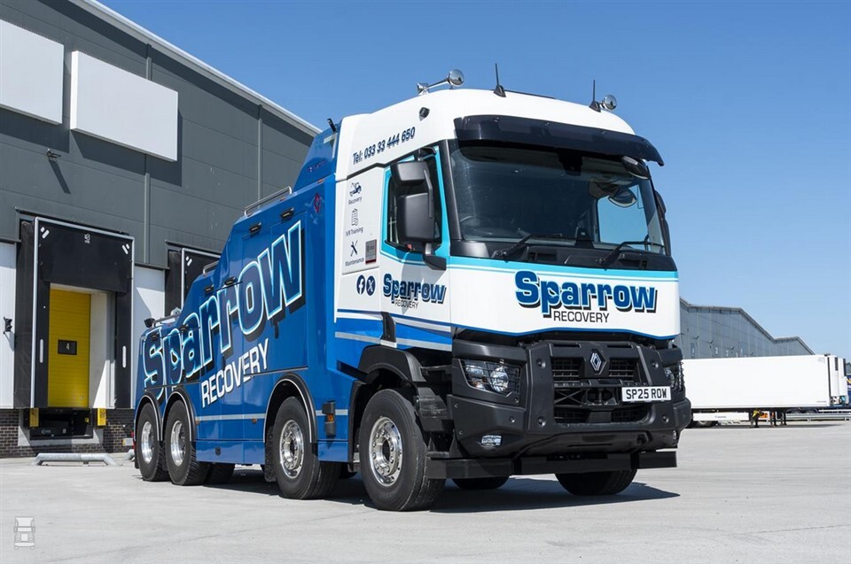 “Dit zijn de grootste Renault bergingswagens van het land”, stelt eigenaar James Sparrow. De nieuwe Renault is een kopie van een eerder geleverd exemplaar. De vrachtwagens hebben een capaciteit van 120 ton. De twee achterassen zijn beide goed voor 16,5 ton. De Renaults worden dan ook ingezet voor het zwaarste werk, of het nu een geladen vrachtwagencombinatie, kraanwagen of dubbeldekkerbus is.